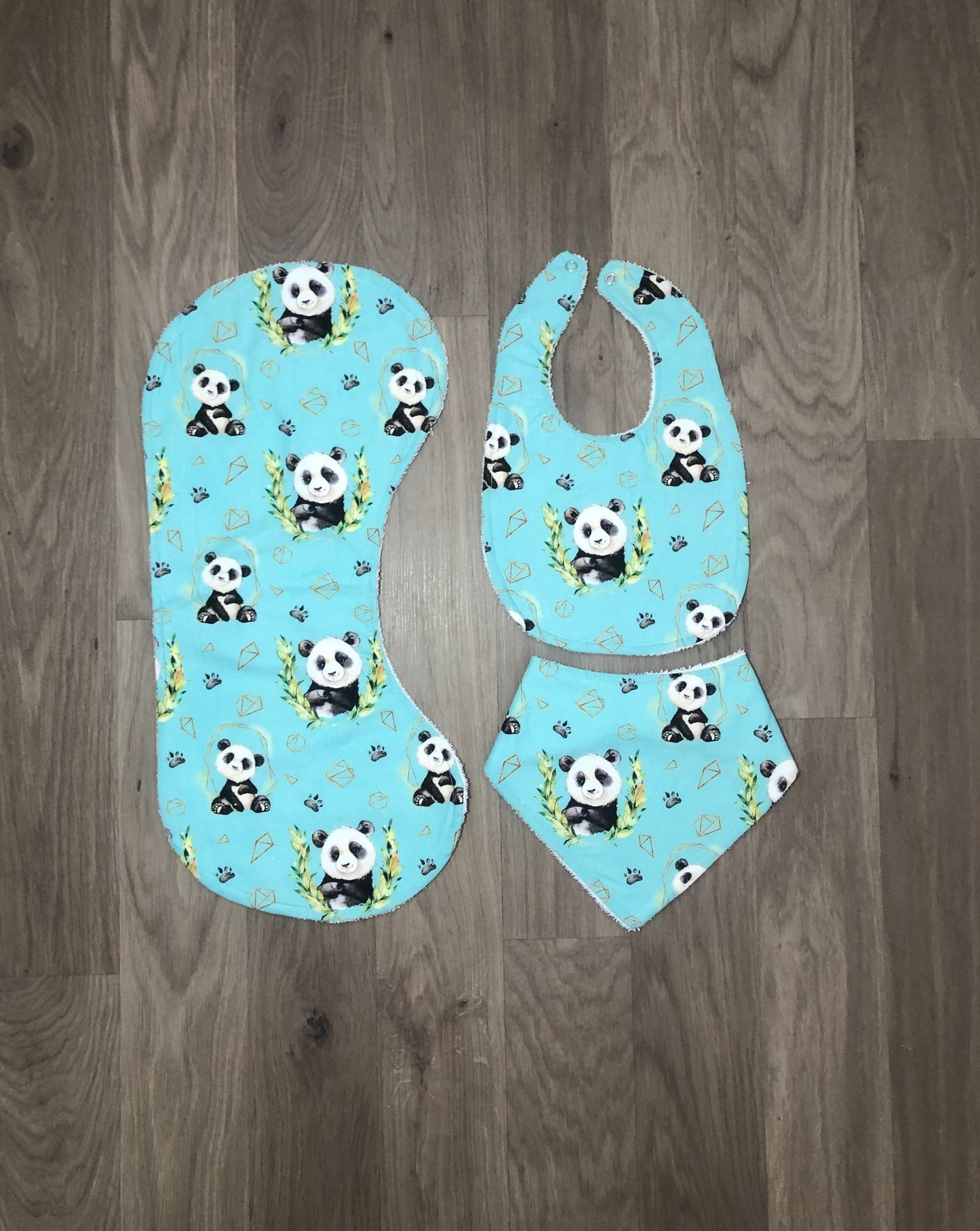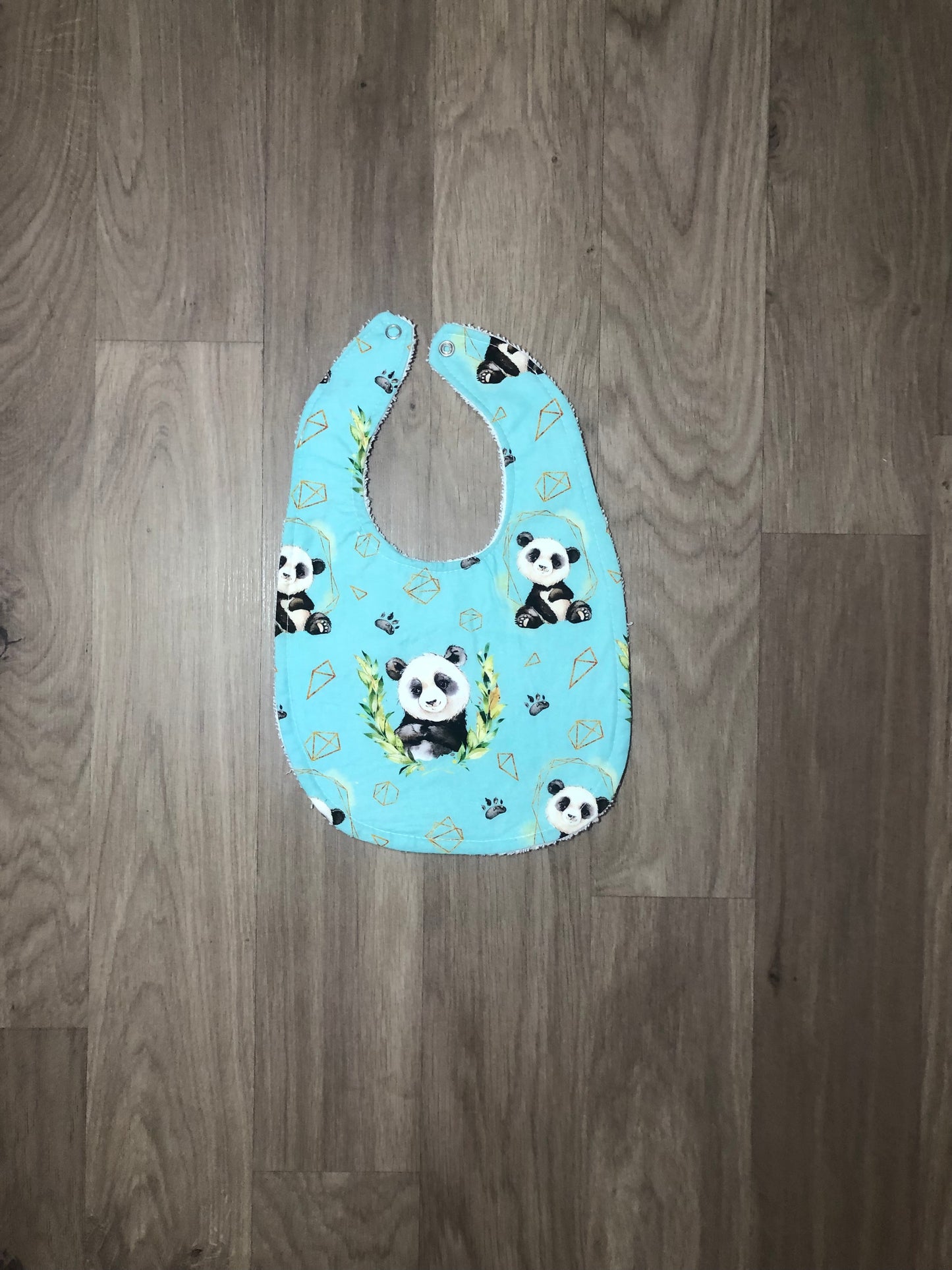 Our beautiful bibs and burp cloths are handmade with cotton on the front and absorbent toweling on the back.