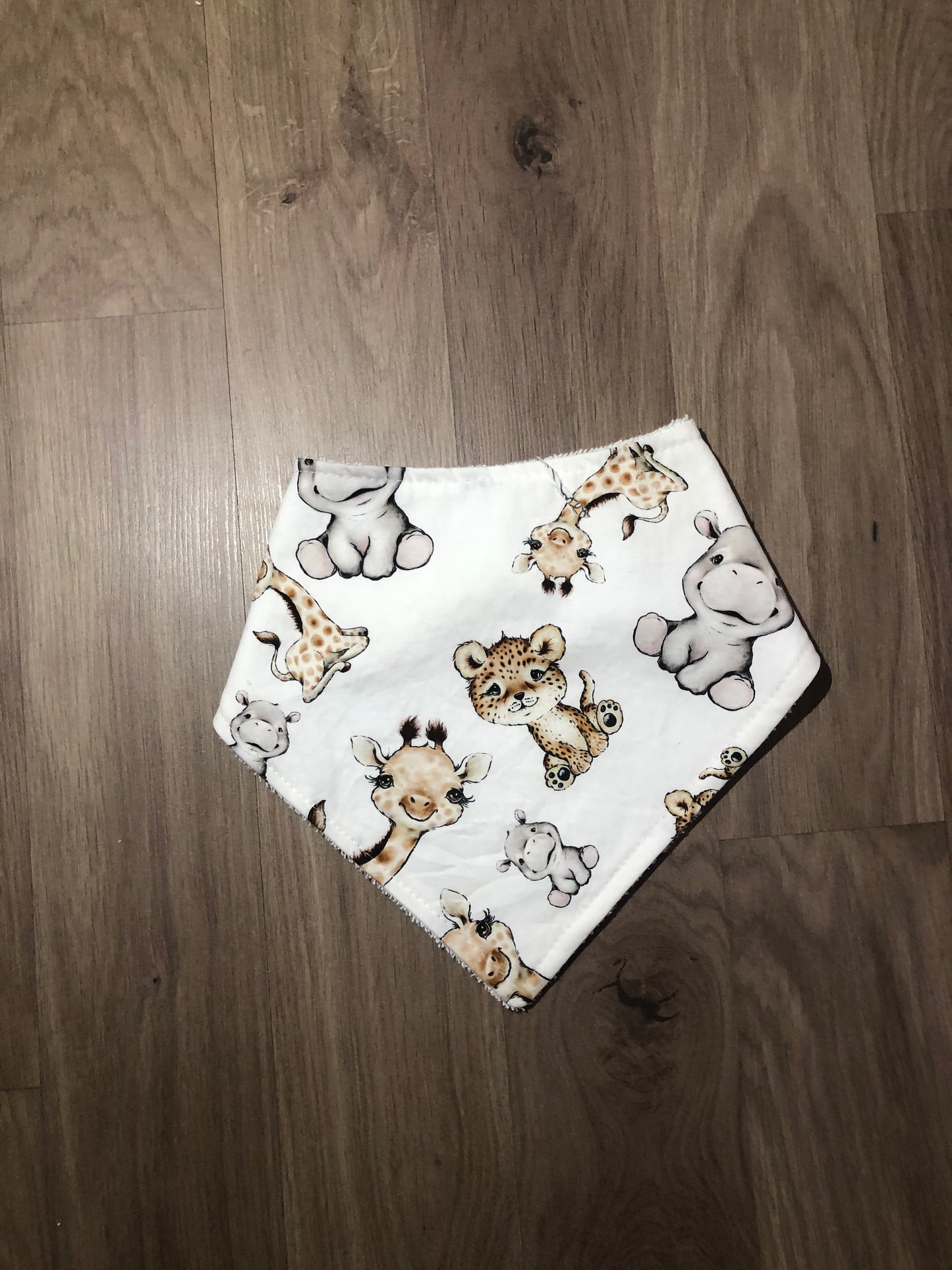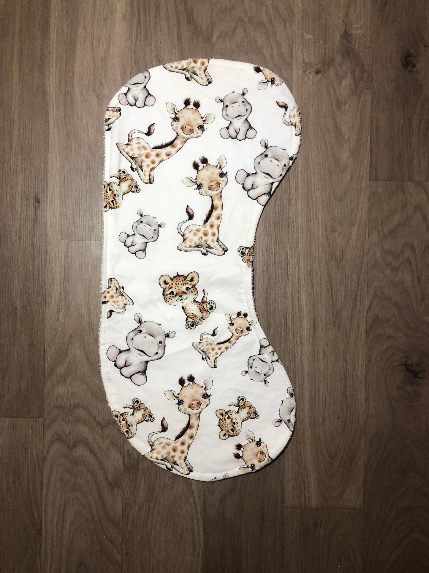 Our beautiful bibs and burp cloths are handmade with cotton on the front and absorbent toweling on the back.