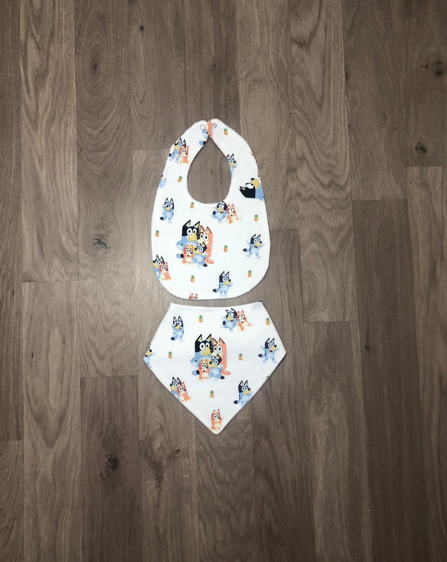 These beautiful bibs are handmade with cotton on the front and absorbent toweling on the back.