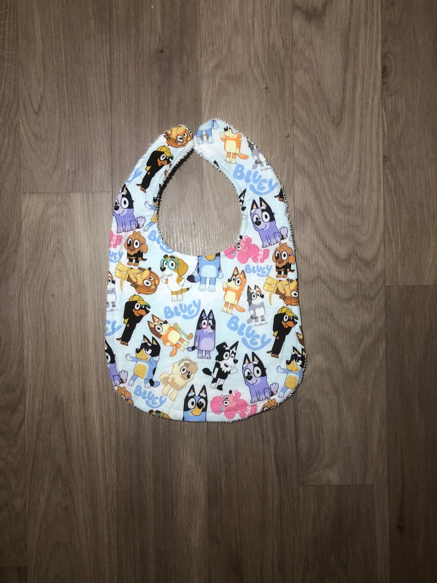 These beautiful bibs are handmade with cotton on the front and absorbent toweling on the back.