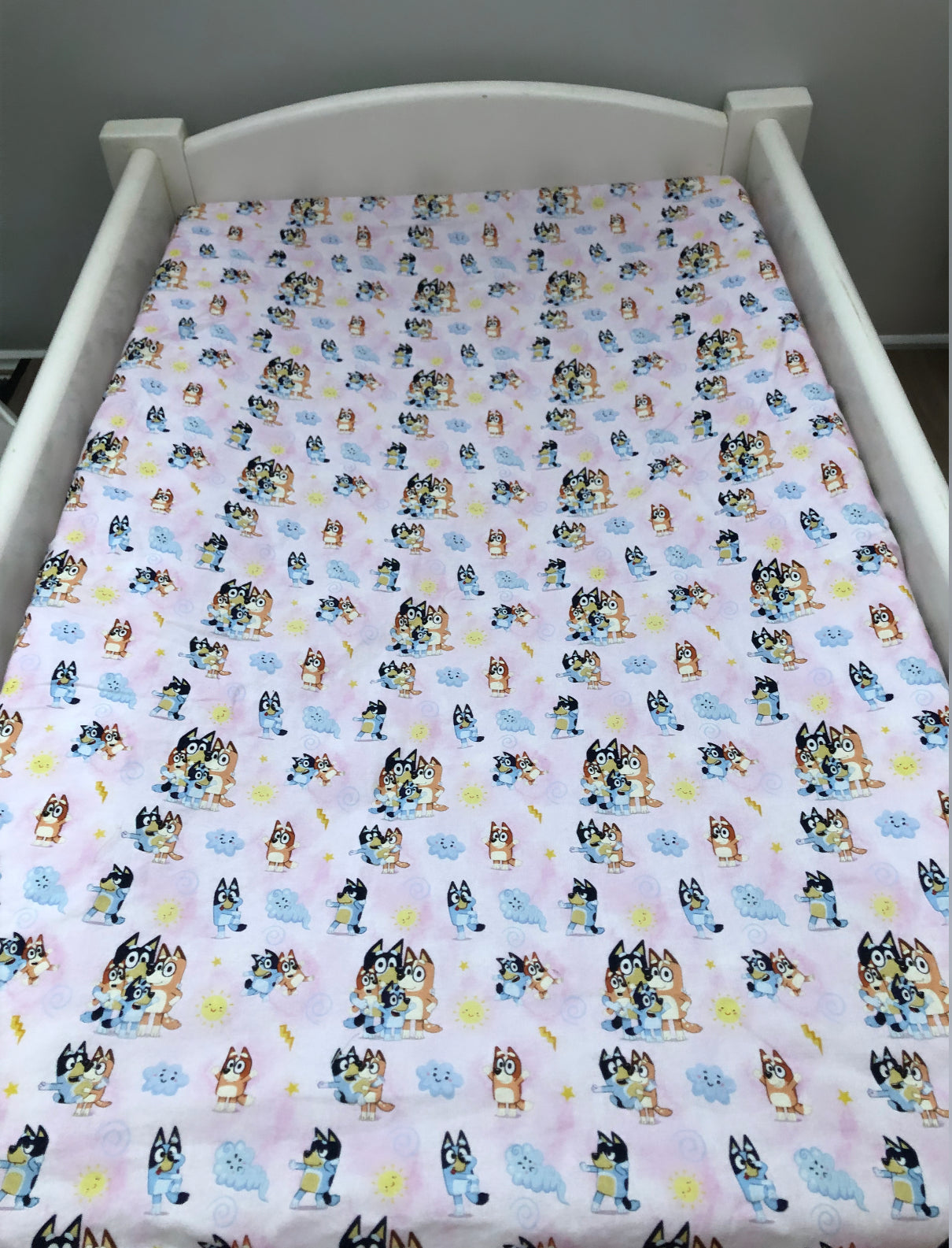 Blue dog - pink - change mat cover/fitted bassinet sheet