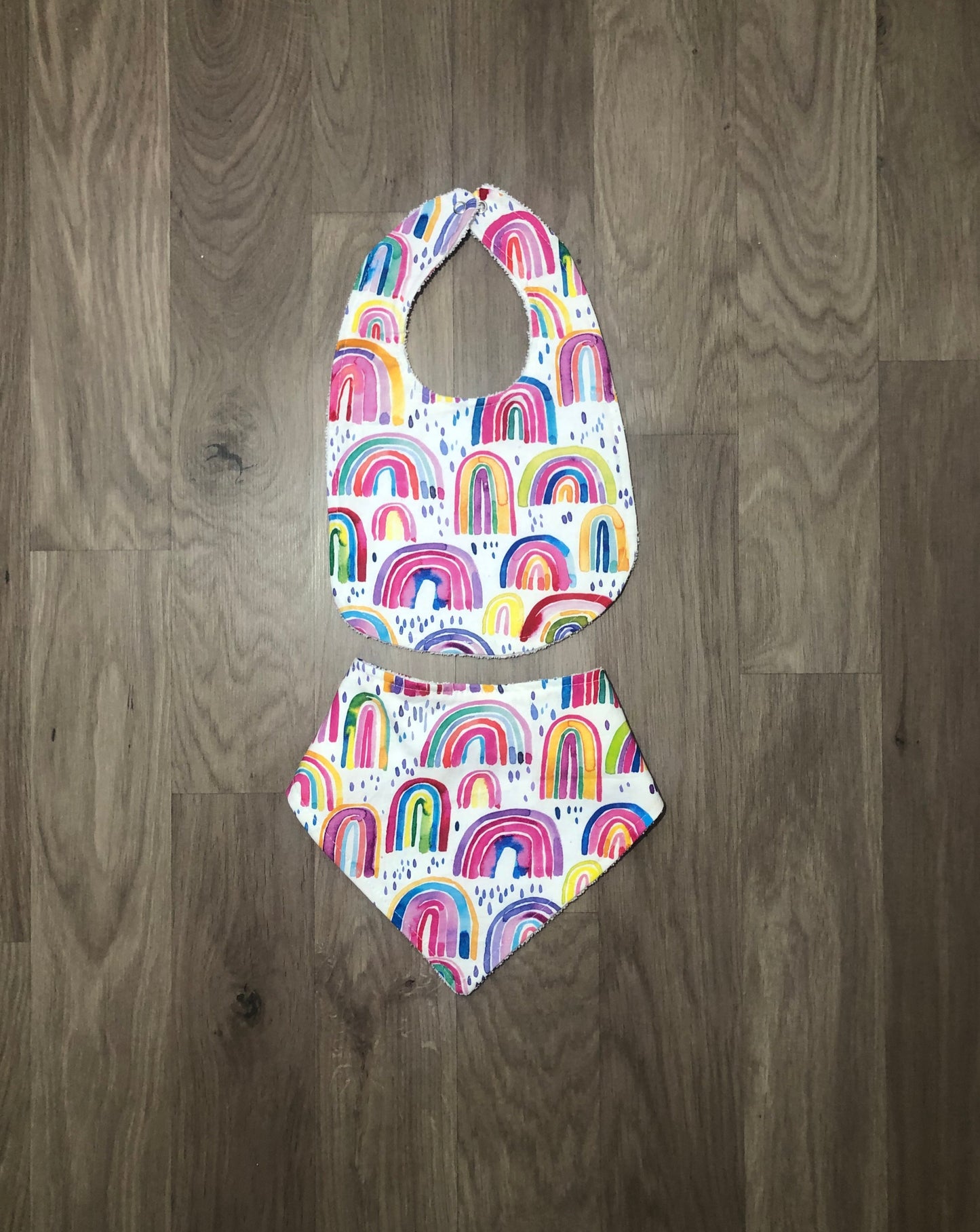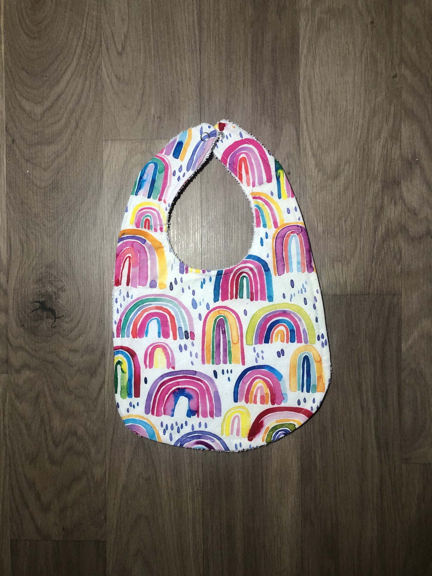 Our beautiful bibs are handmade with cotton on the front and absorbent toweling on the back.