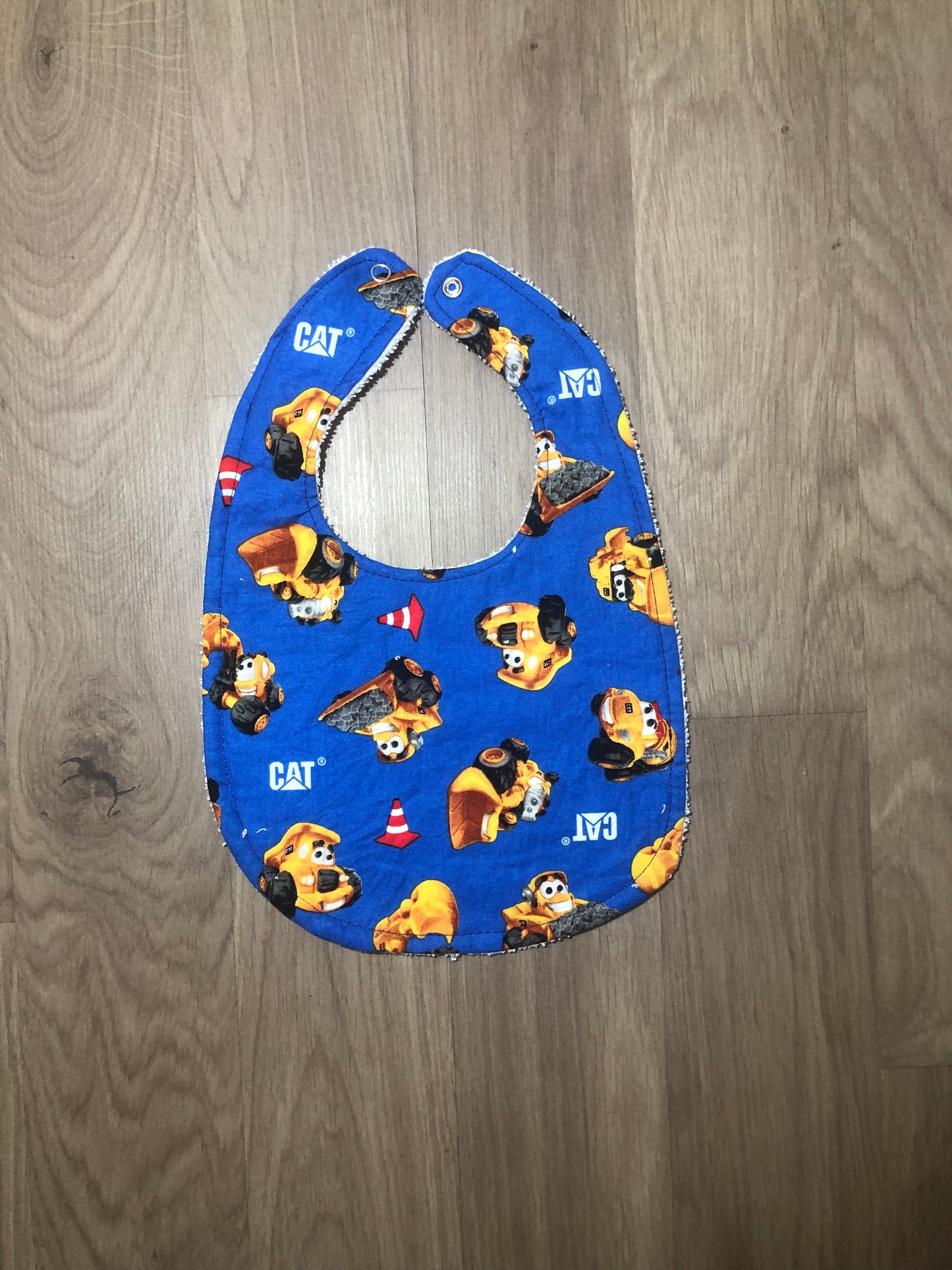 These beautiful bibs are handmade with cotton on the front and absorbent toweling on the back.