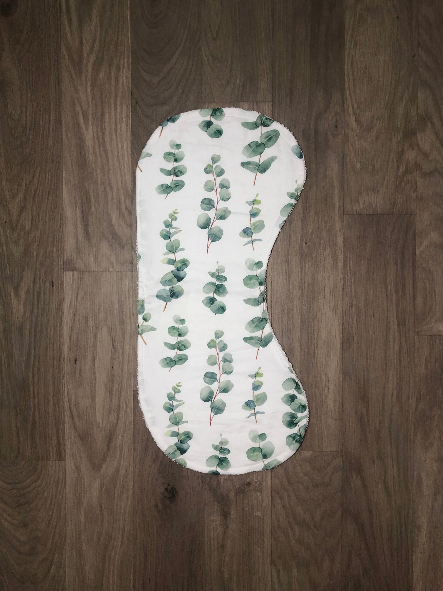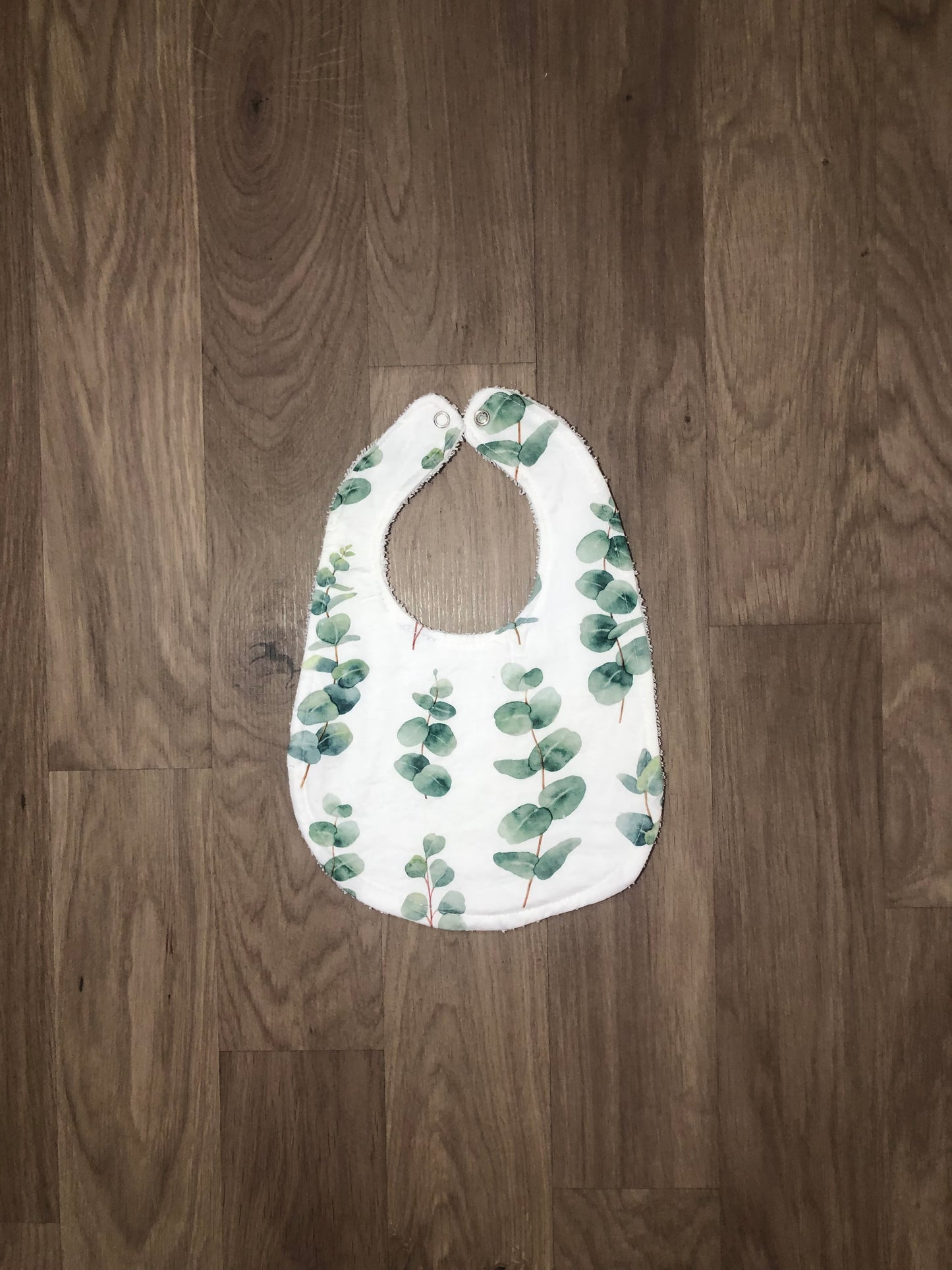 Our beautiful bibs and burp cloths are handmade with cotton on the front and absorbent toweling on the back.