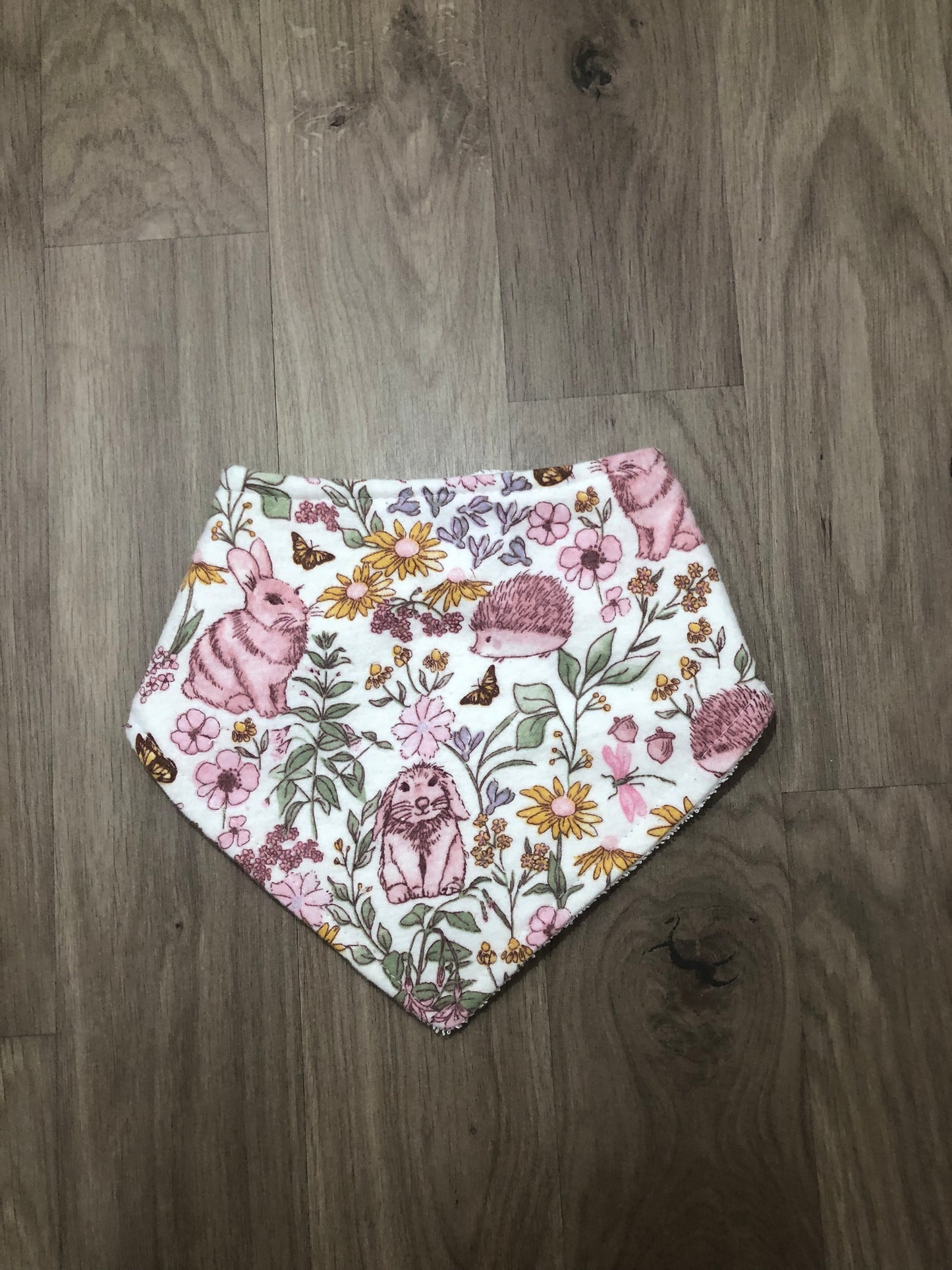 These beautiful bibs are handmade with cotton on the front and absorbent toweling on the back.