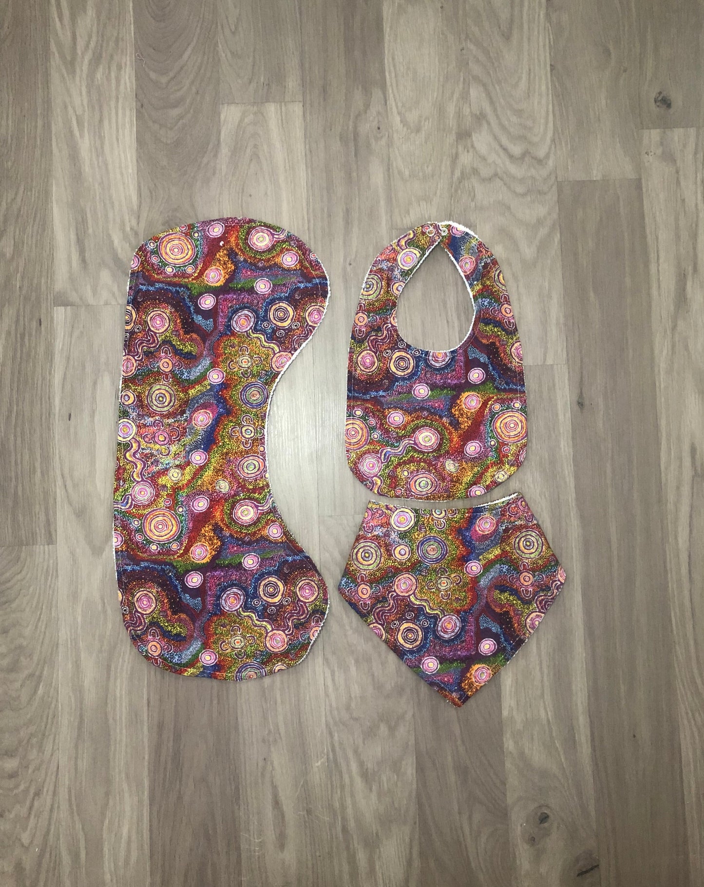 These beautiful bibs are handmade with cotton on the front and absorbent toweling on the back.