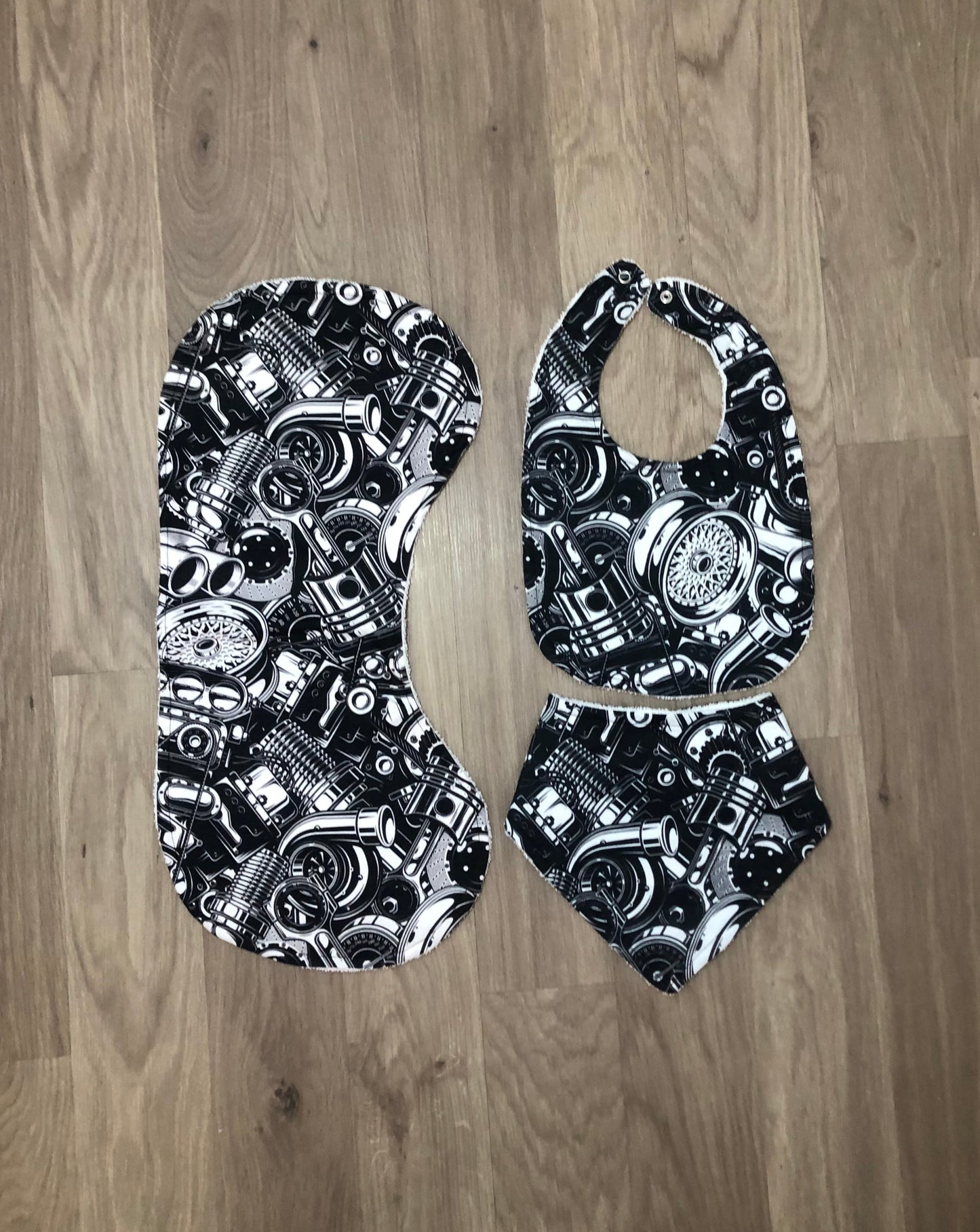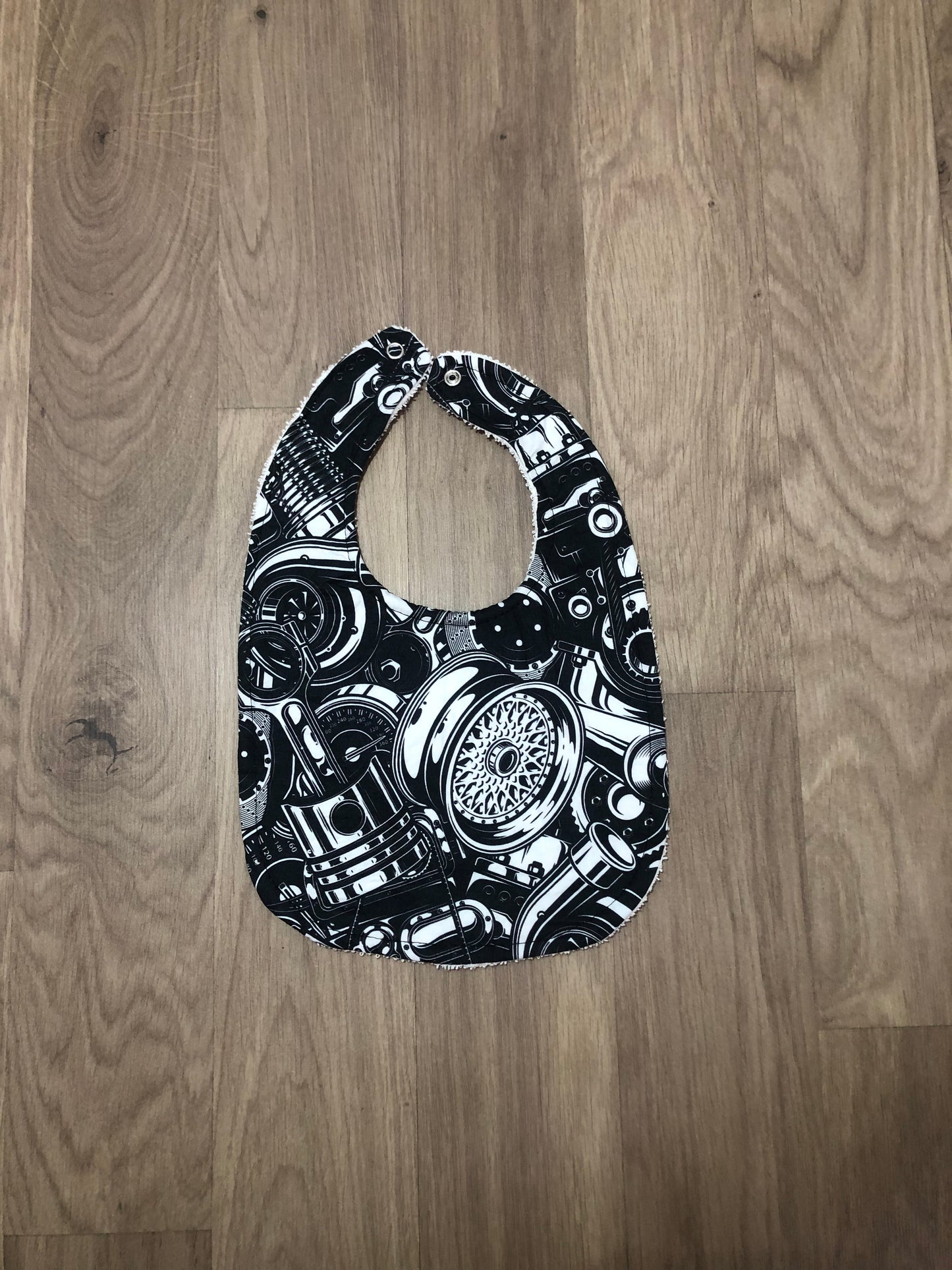 Our beautiful bibs and burp cloths are handmade with cotton on the front and absorbent toweling on the back.