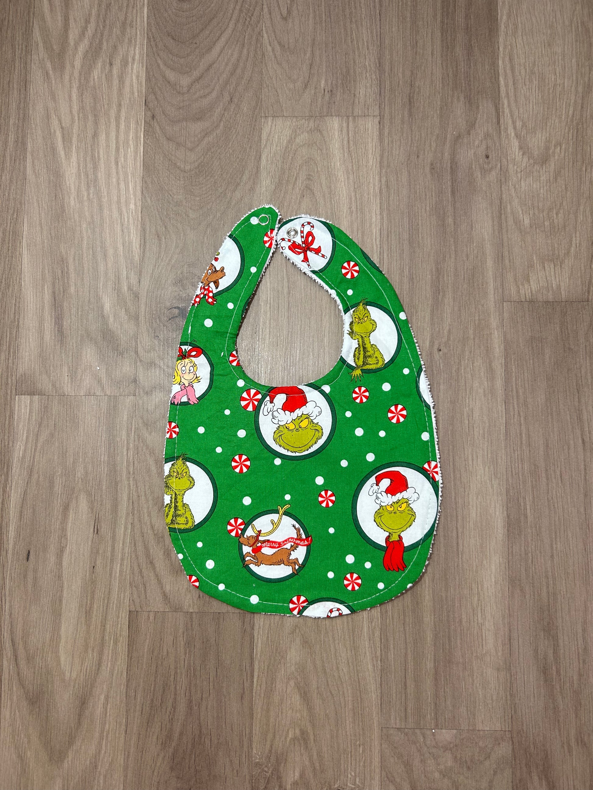 These beautiful bibs are handmade with cotton on the front and absorbent toweling on the back.