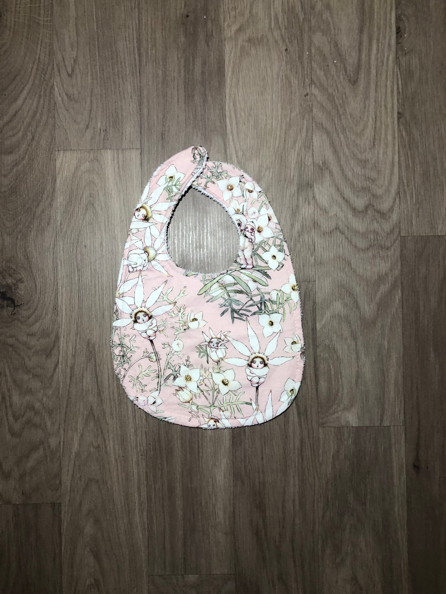These beautiful bibs are handmade with cotton on the front and absorbent toweling on the back.