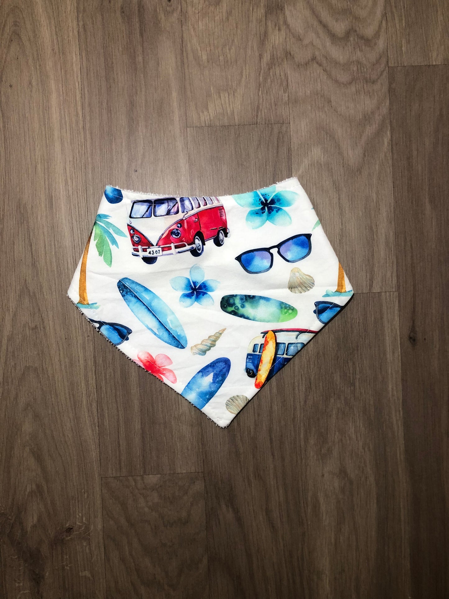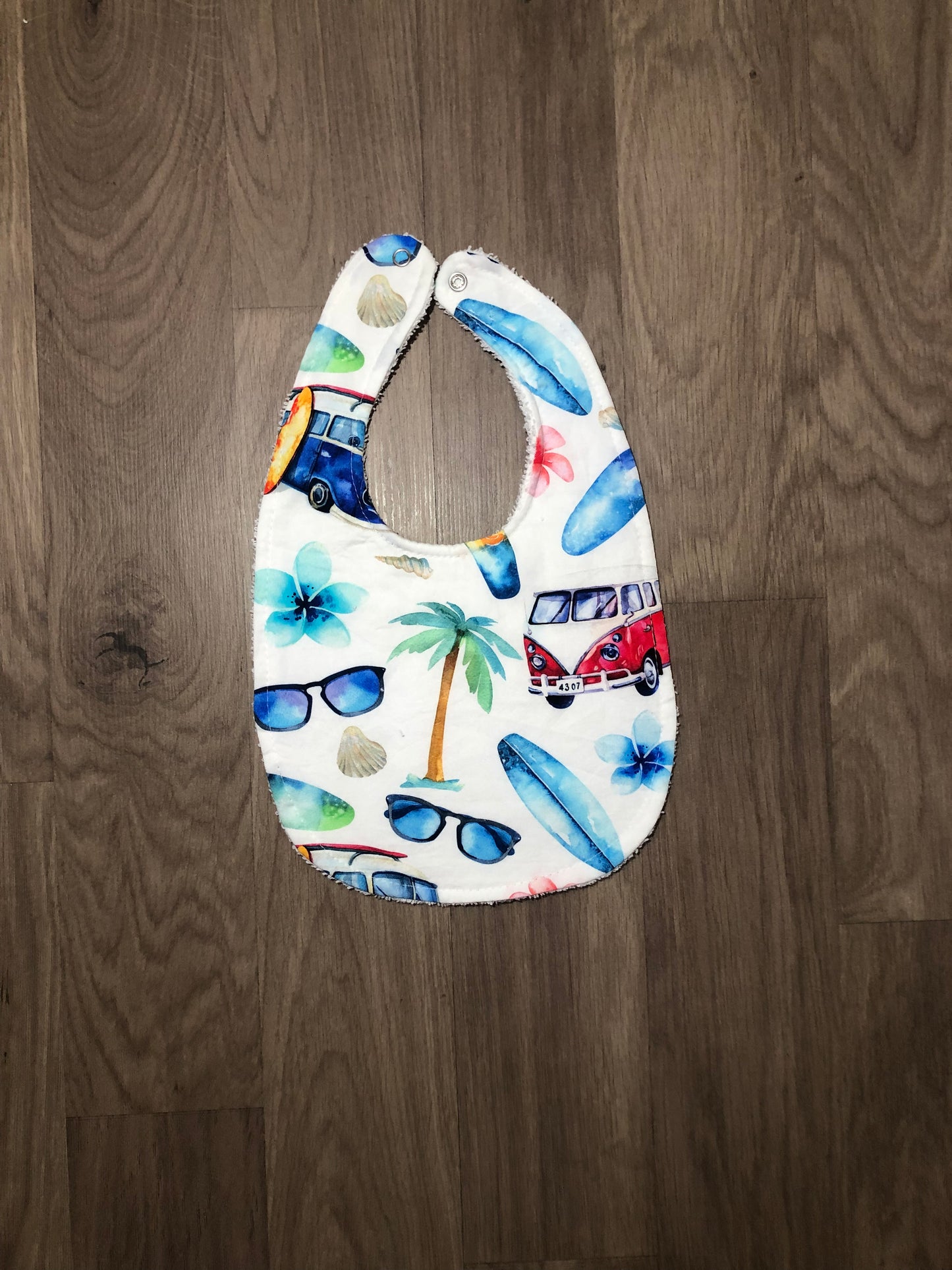 These beautiful bibs are handmade with cotton on the front and absorbent toweling on the back.
