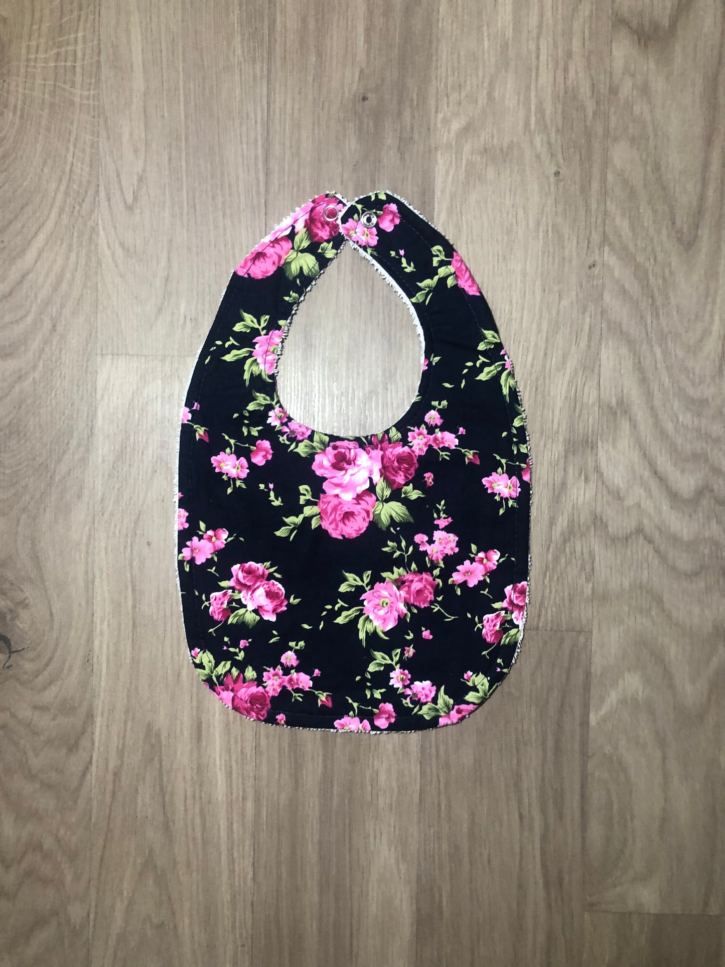 These beautiful bibs are handmade with cotton on the front and absorbent toweling on the back.
