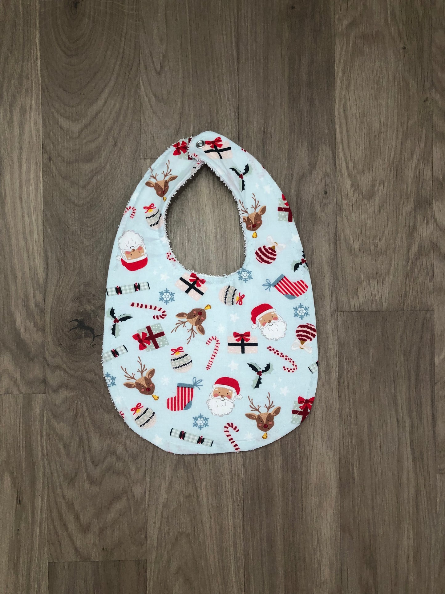 These beautiful bibs are handmade with cotton on the front and absorbent toweling on the back.