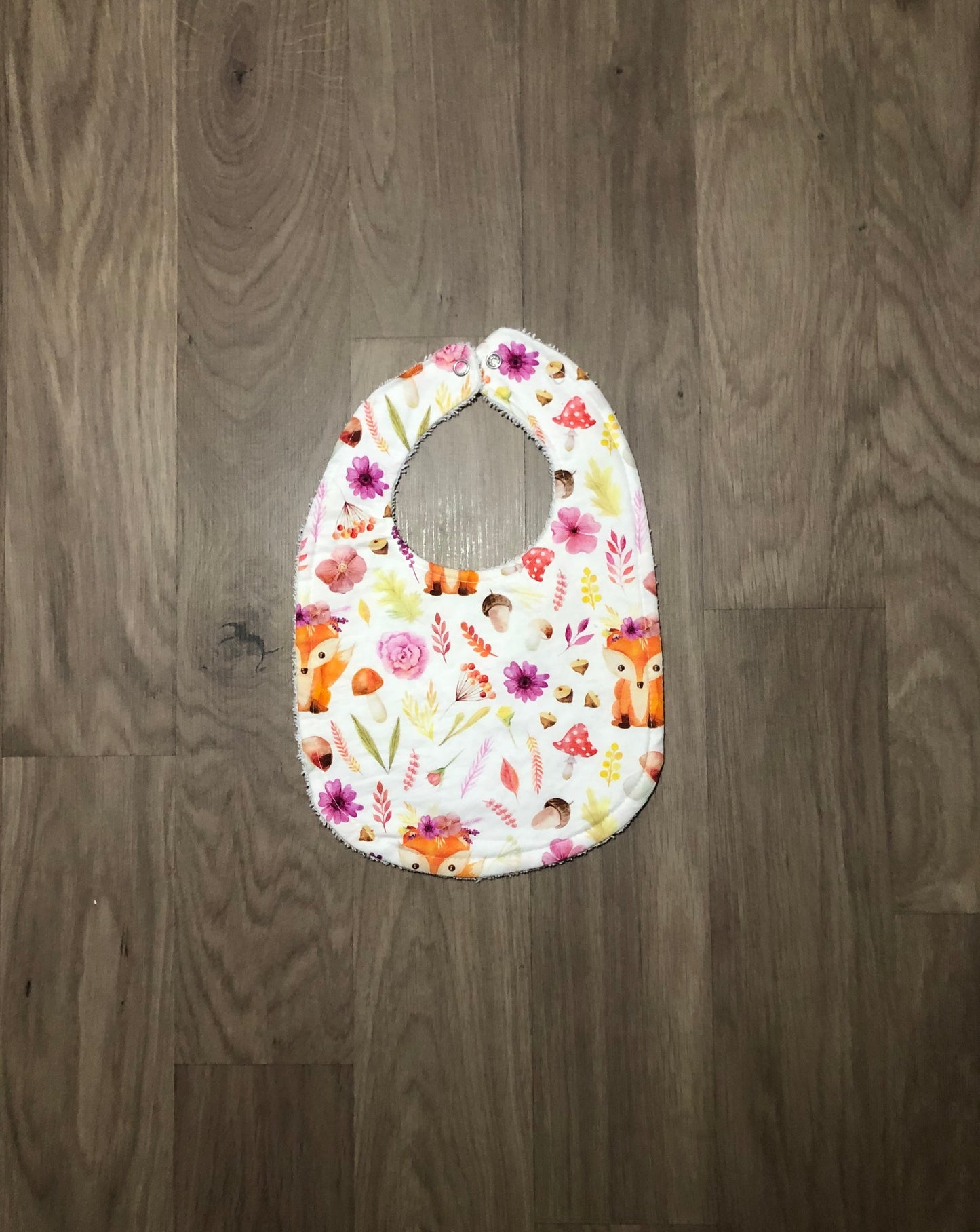 These beautiful bibs are handmade with cotton on the front and absorbent toweling on the back.