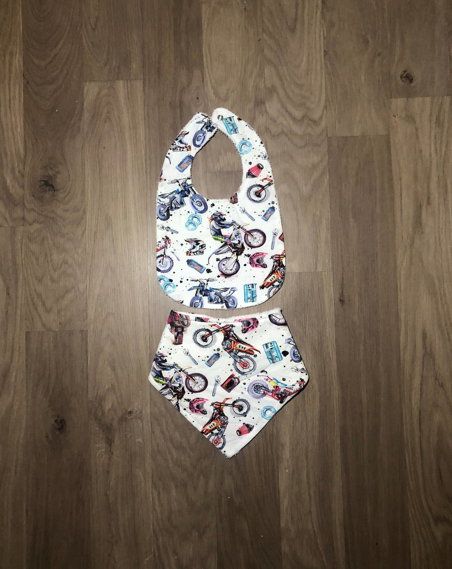 These beautiful bibs are handmade with cotton on the front and absorbent toweling on the back.
