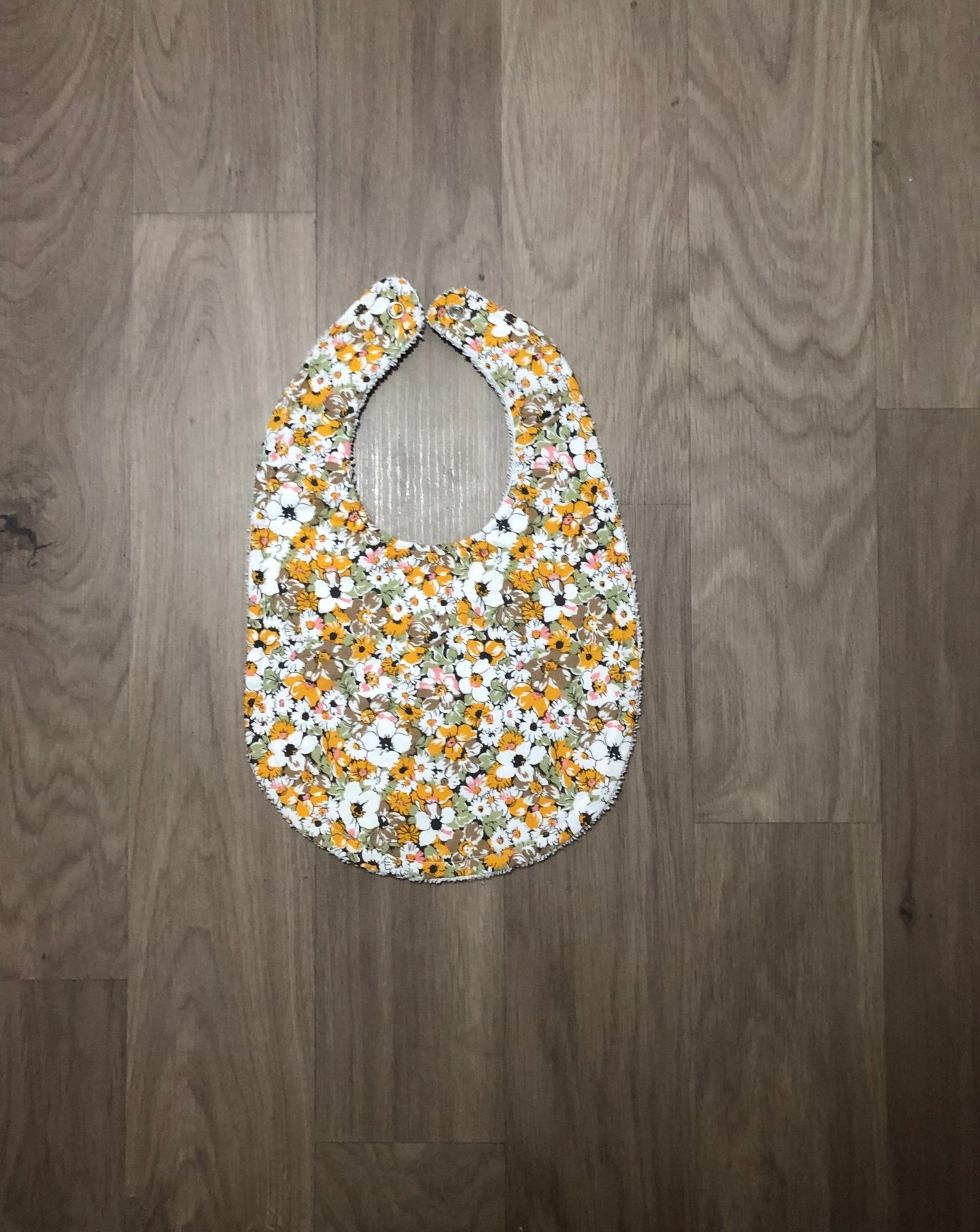 These beautiful bibs are handmade with cotton on the front and absorbent toweling on the back.