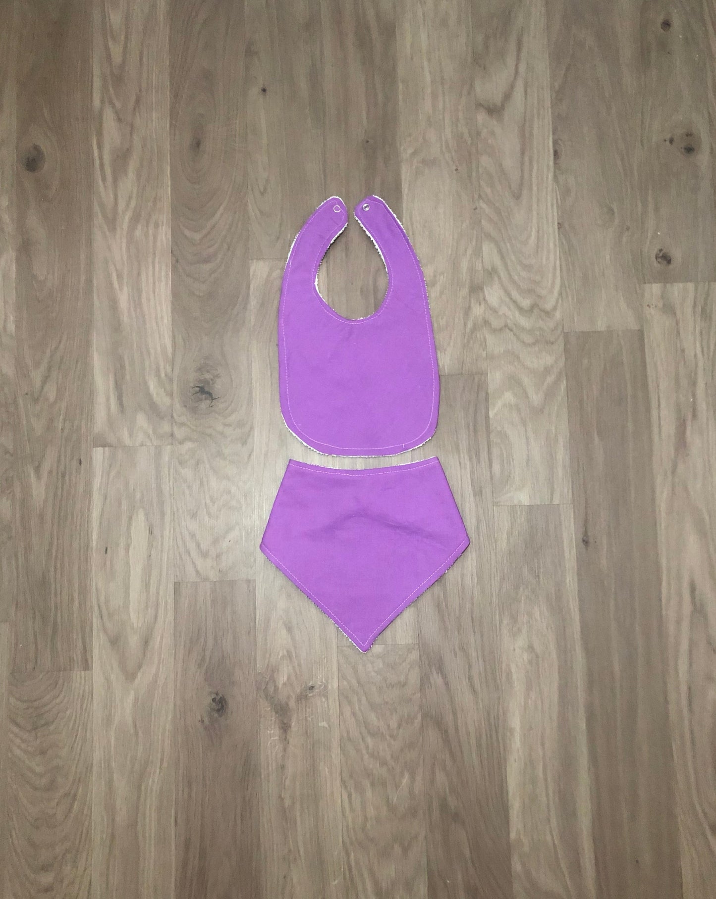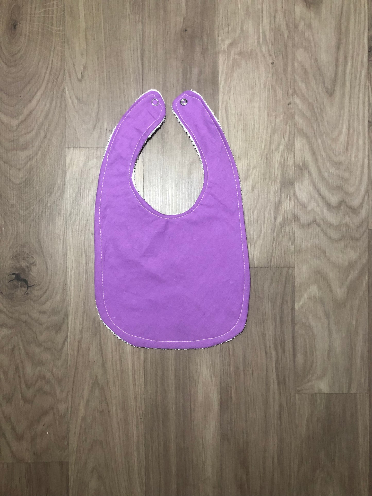 Our beautiful bibs are handmade with cotton on the front and absorbent toweling on the back.