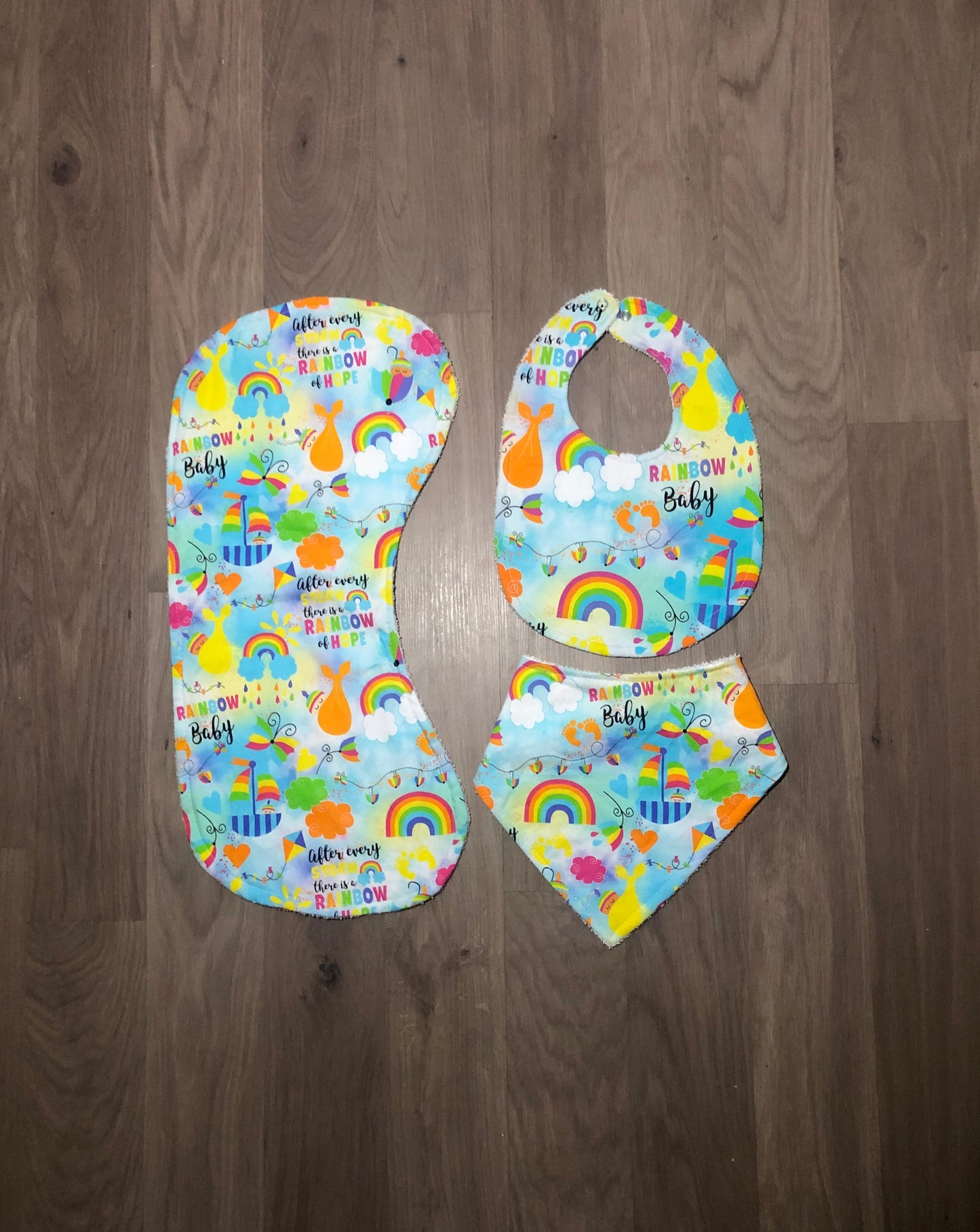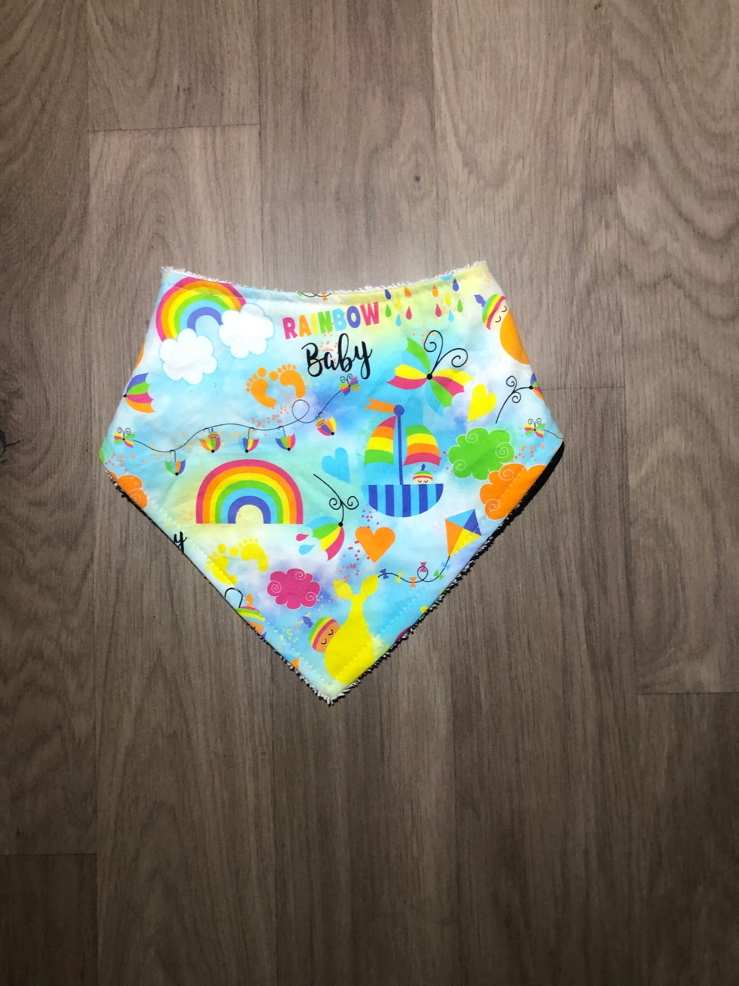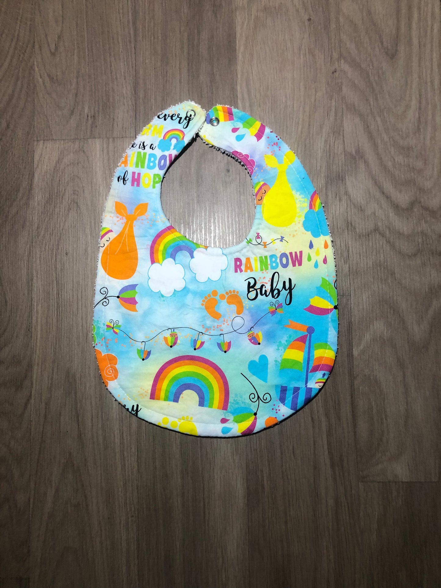 Our beautiful bibs and burp cloths are handmade with cotton on the front and absorbent toweling on the back.