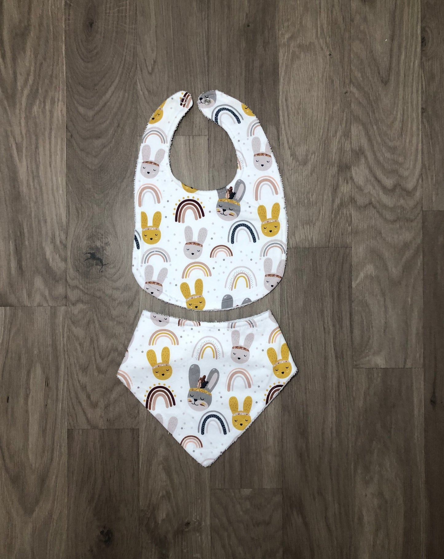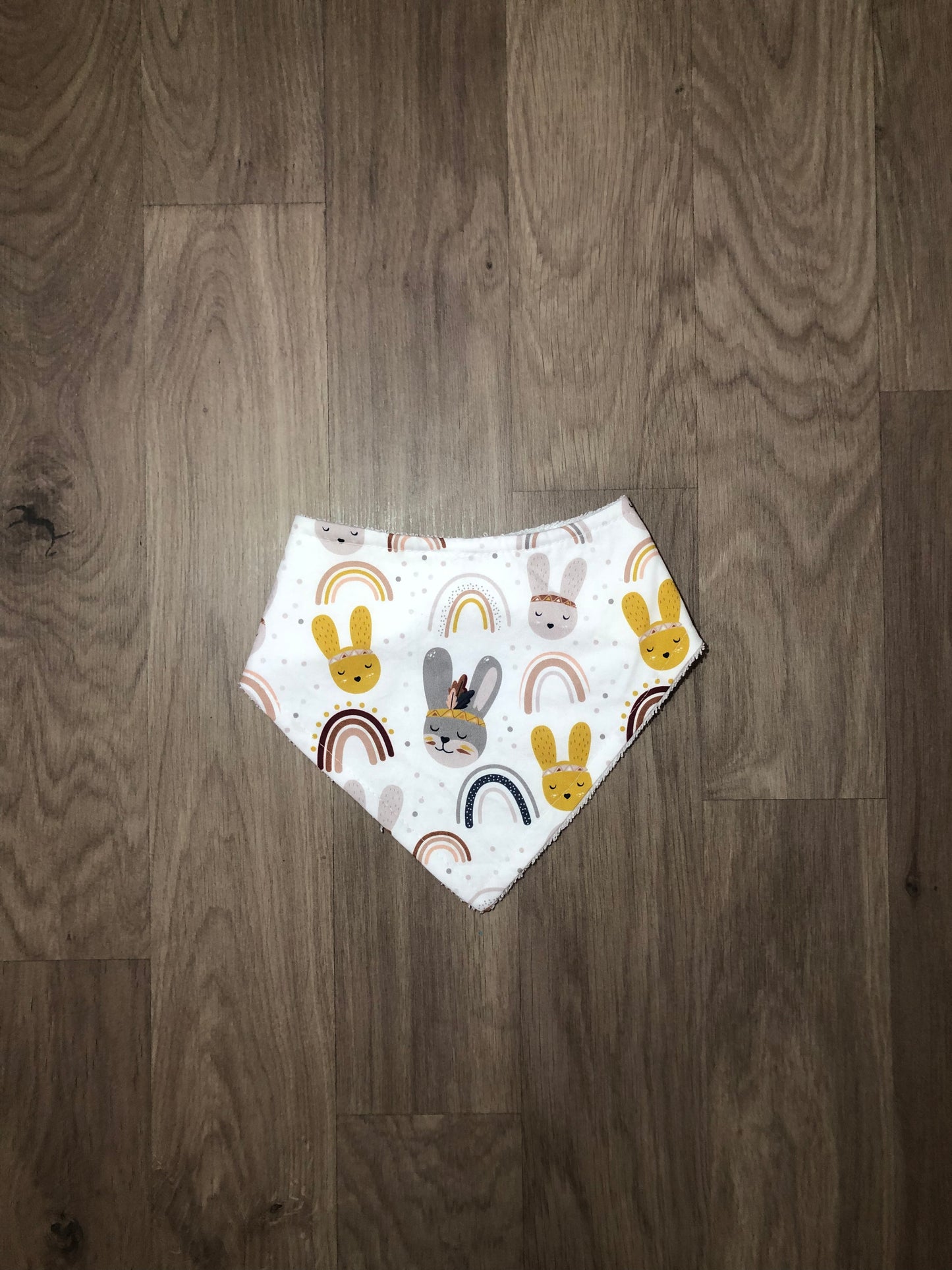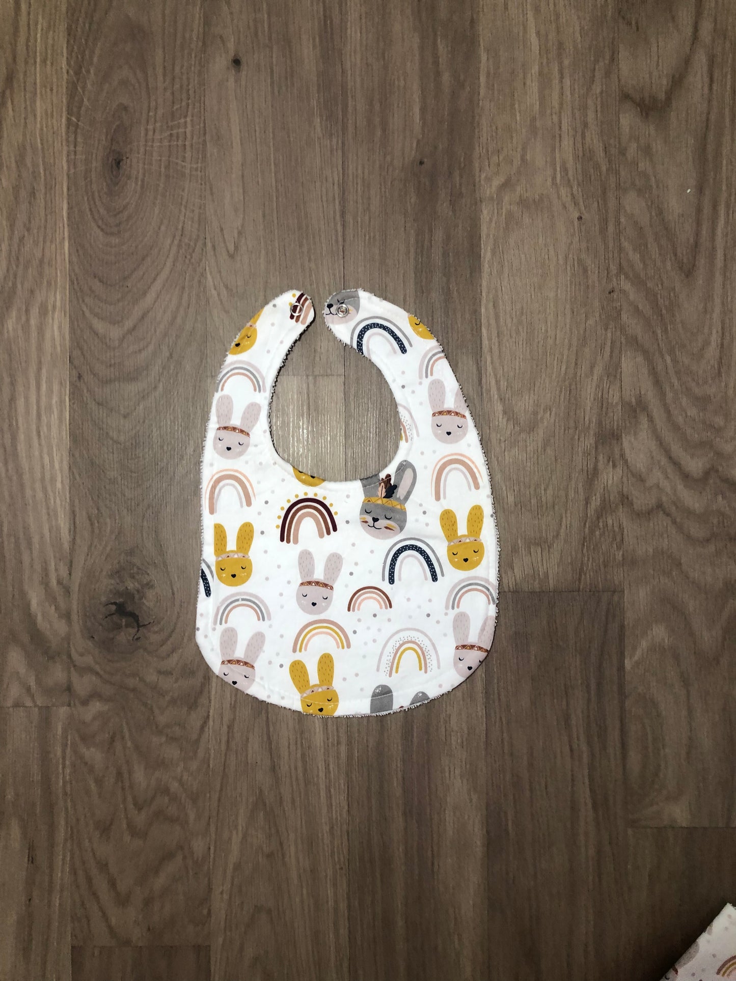 These beautiful bibs are handmade with cotton on the front and absorbent toweling on the back.
