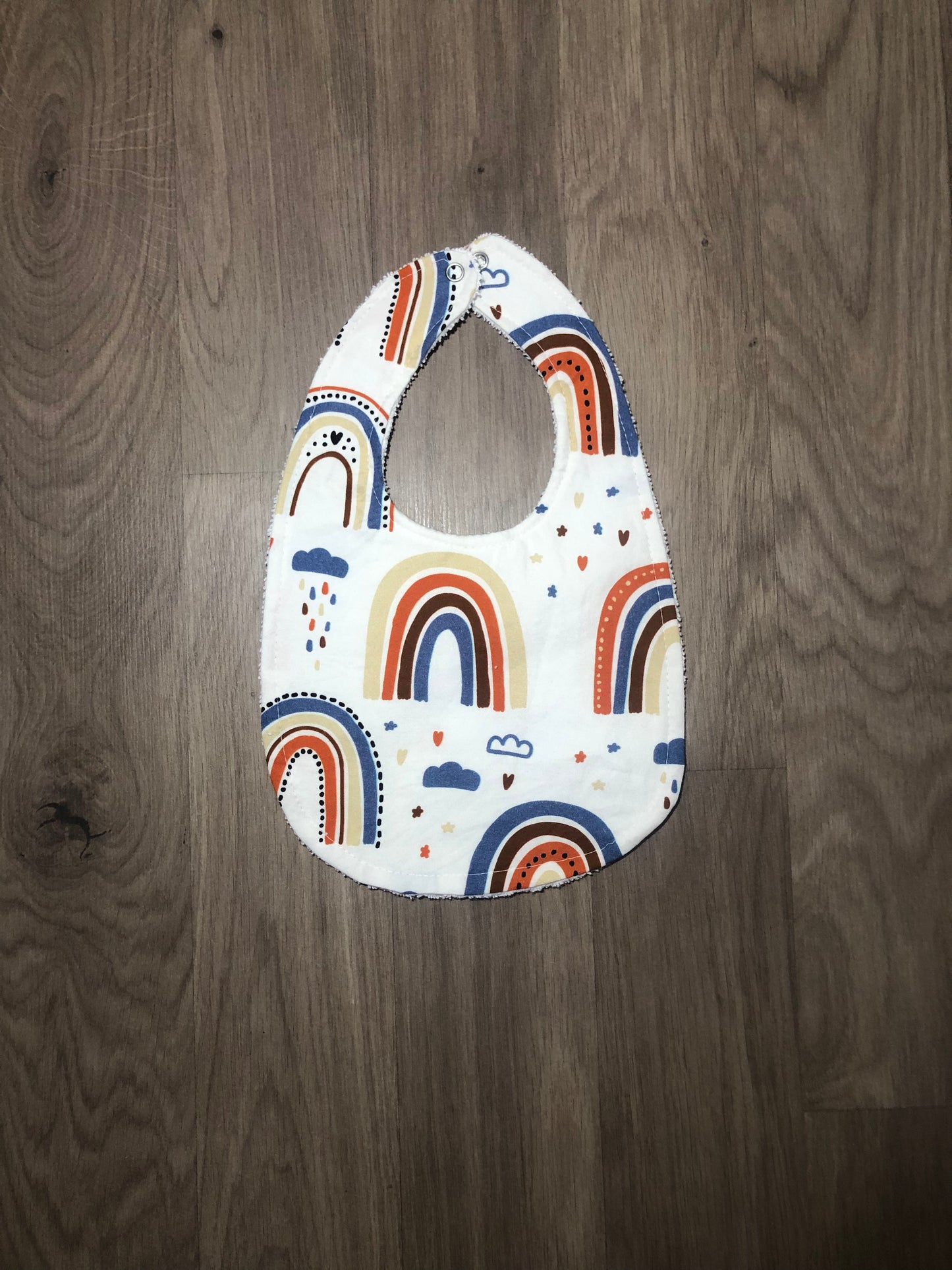 These beautiful bibs are handmade with cotton on the front and absorbent toweling on the back.