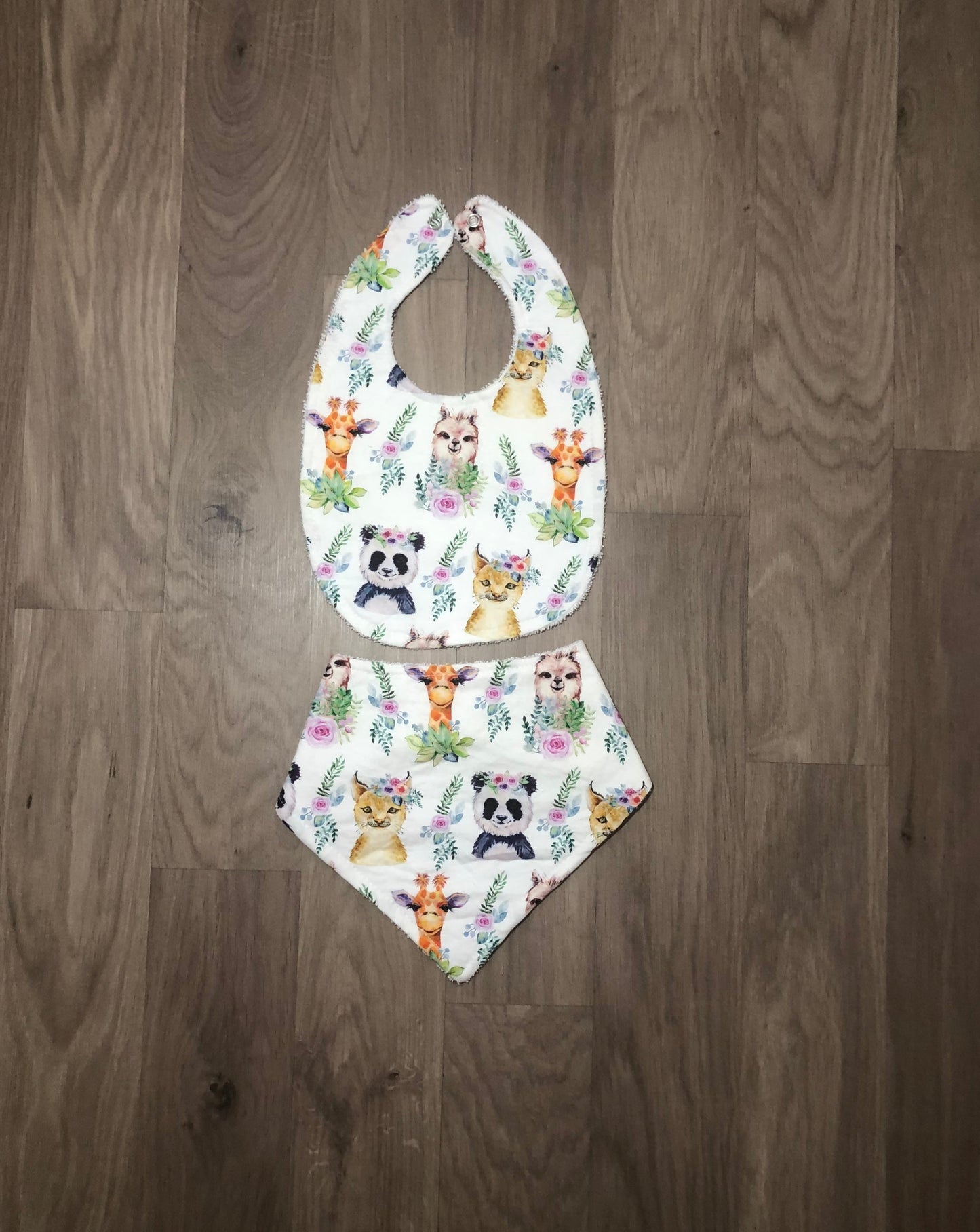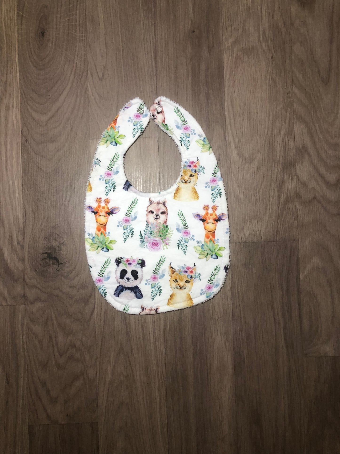These beautiful bibs are handmade with cotton on the front and absorbent toweling on the back.