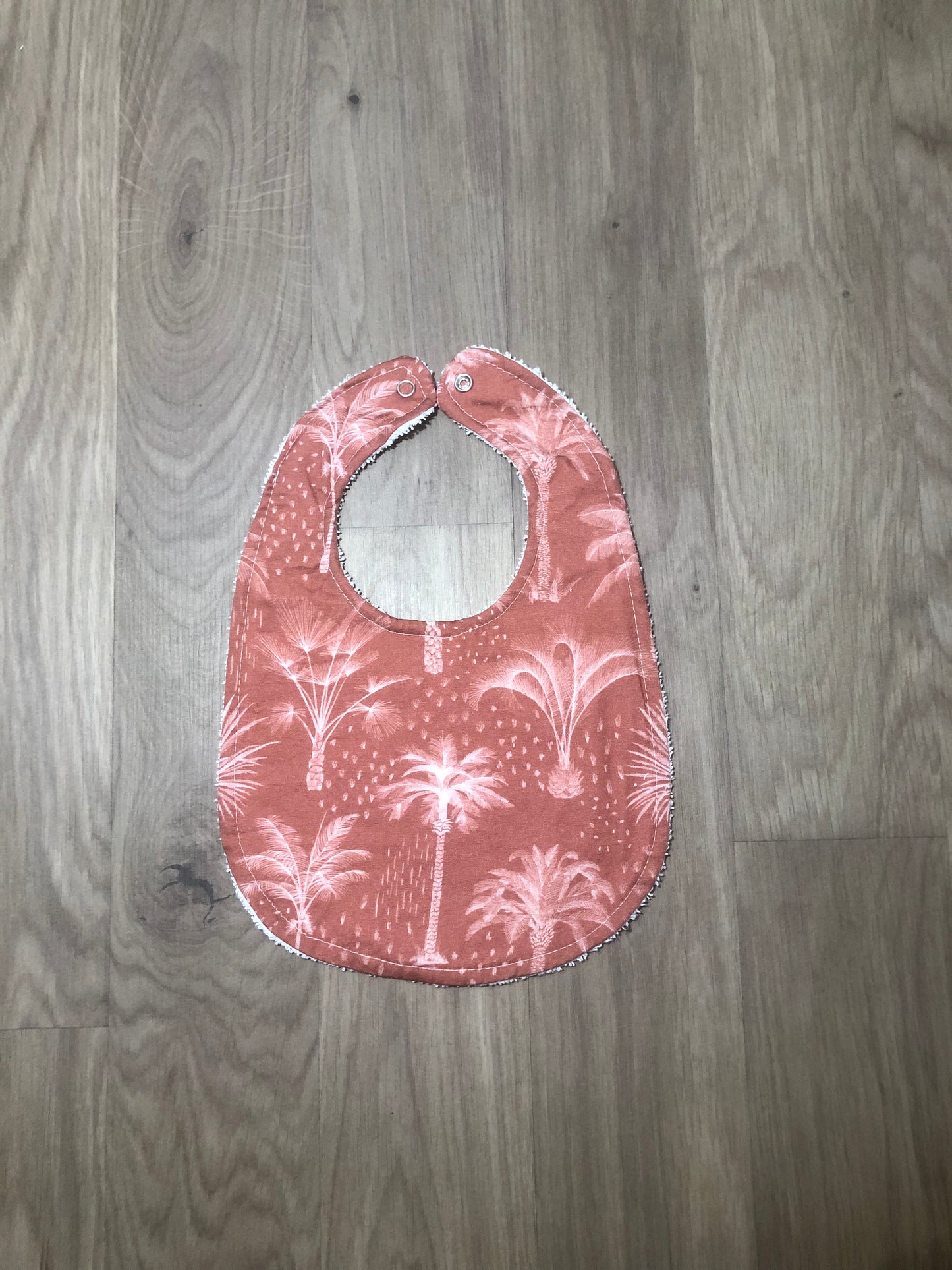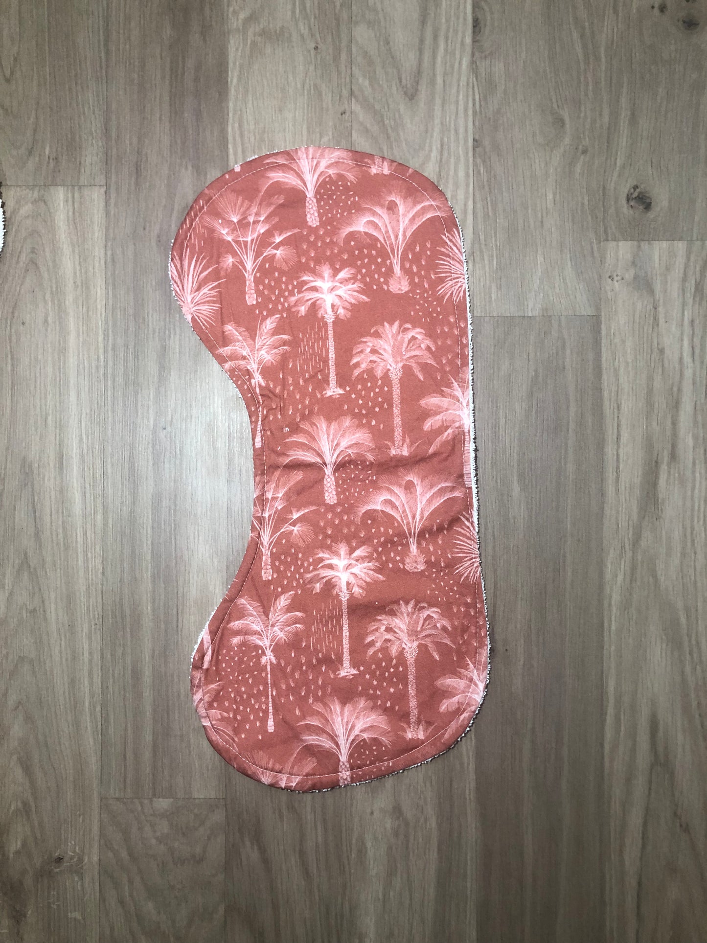 Our beautiful bibs and burp cloths are handmade with cotton on the front and absorbent toweling on the back.