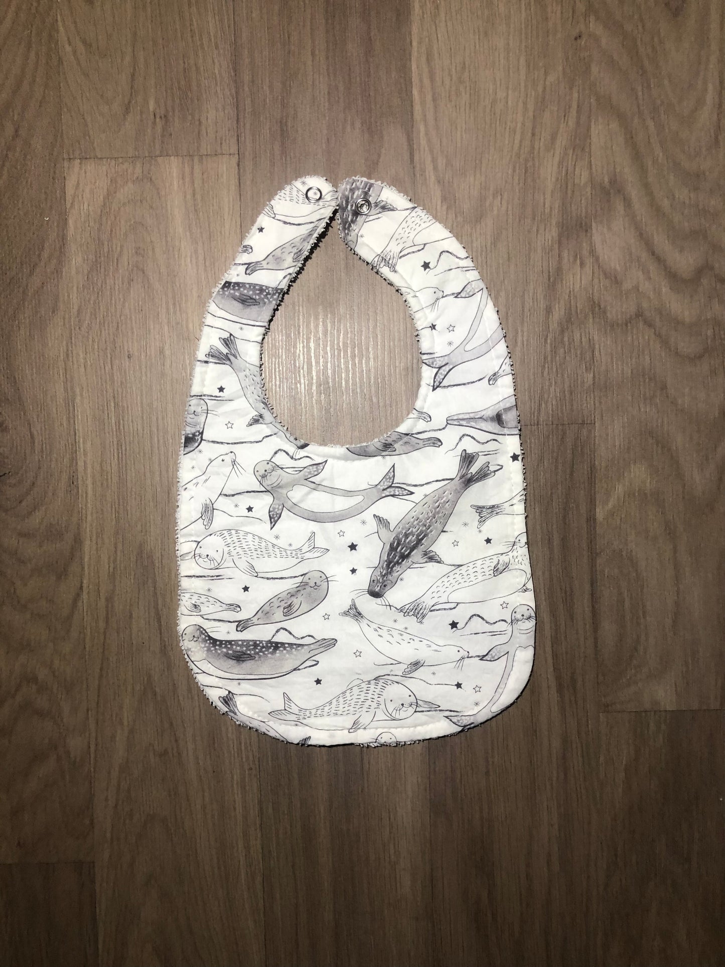 These beautiful bibs are handmade with cotton on the front and absorbent toweling on the back.