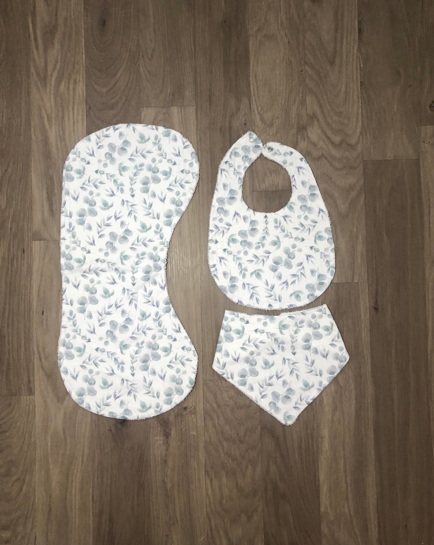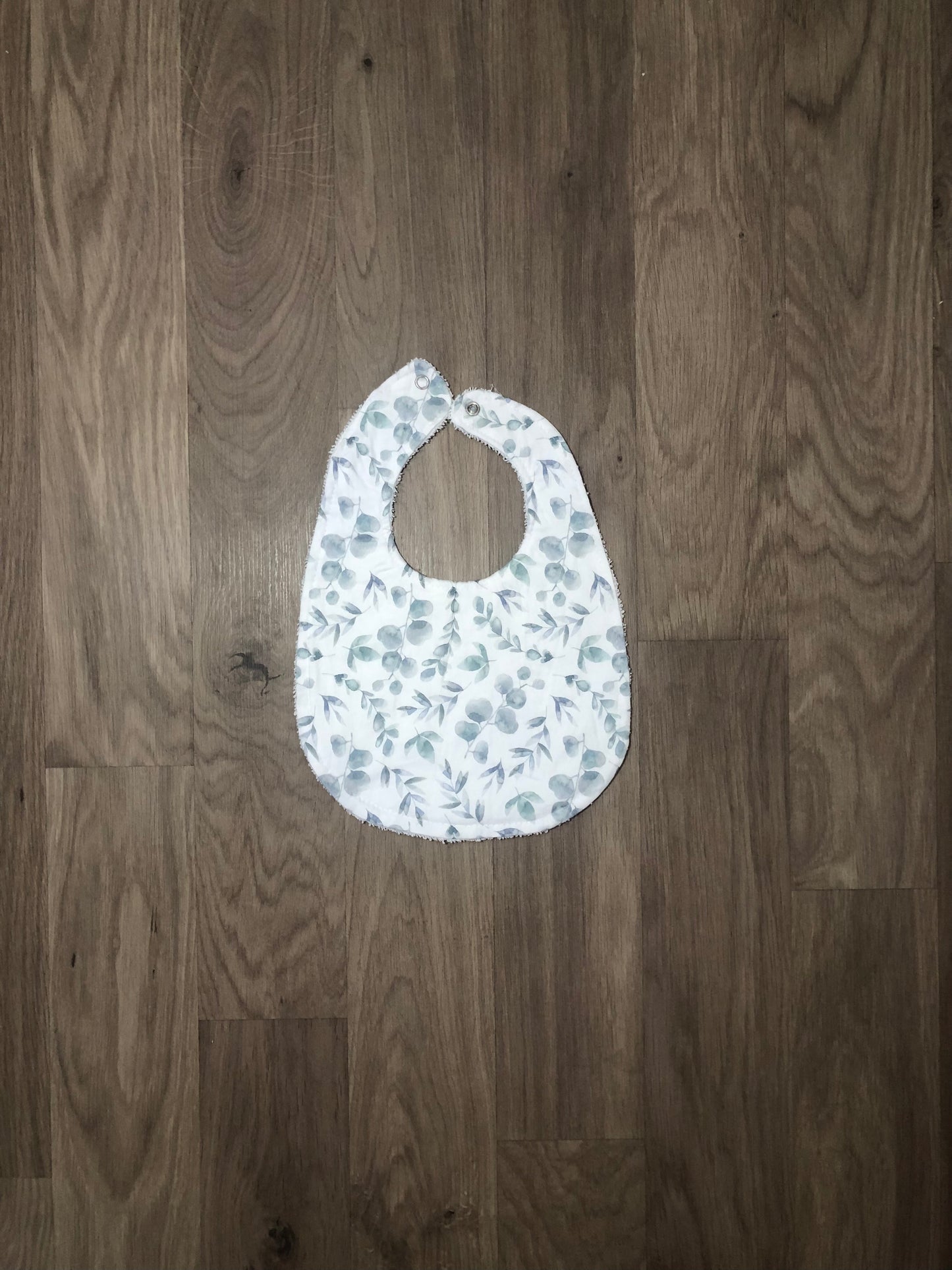Our beautiful bibs and burp cloths are handmade with cotton on the front and absorbent toweling on the back.