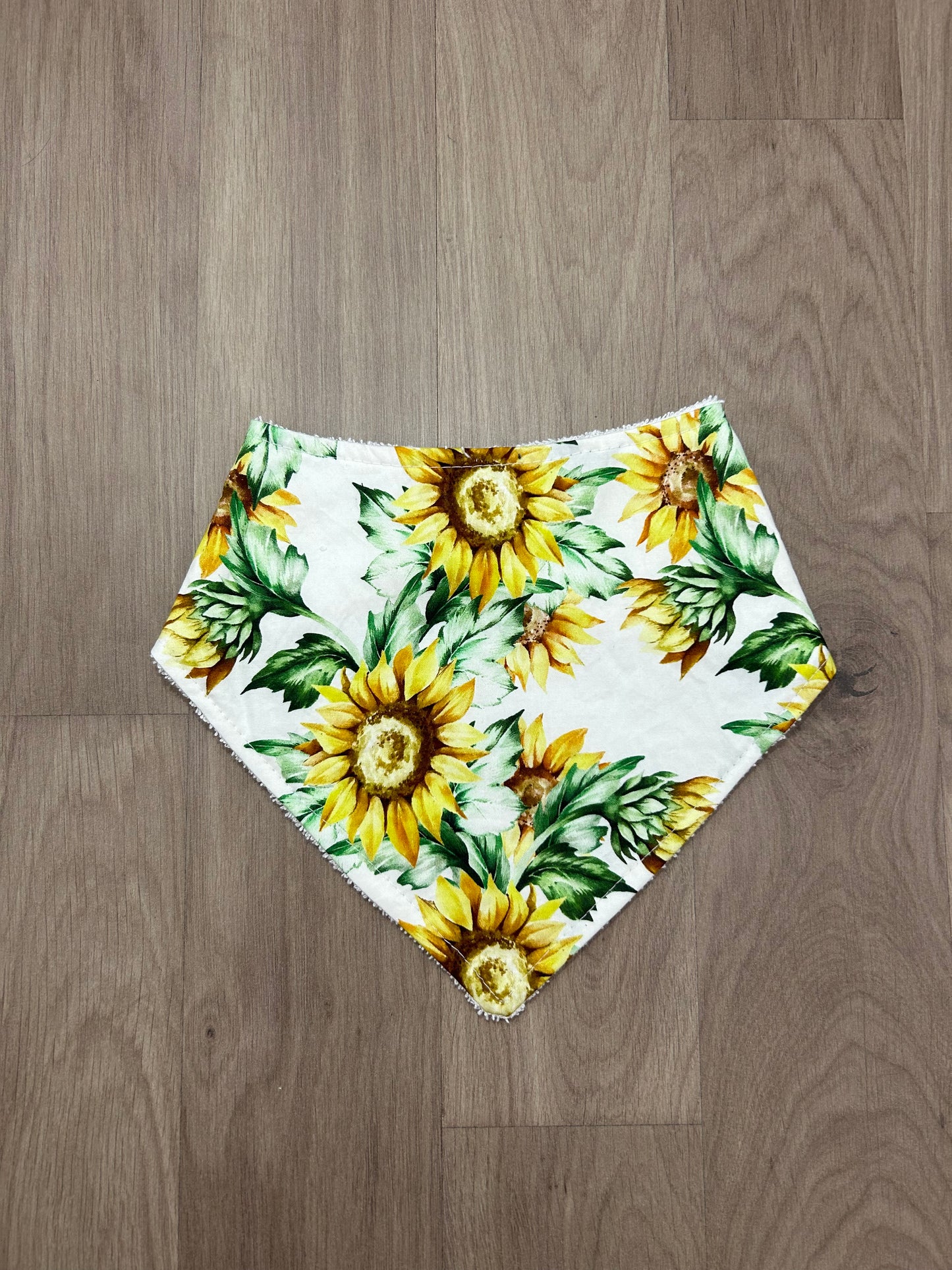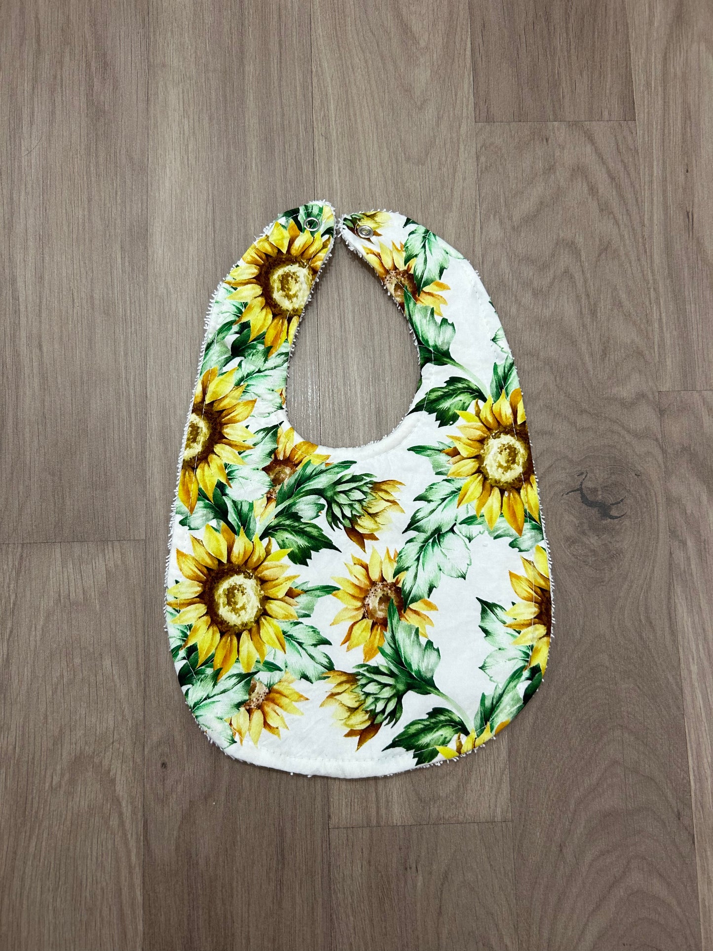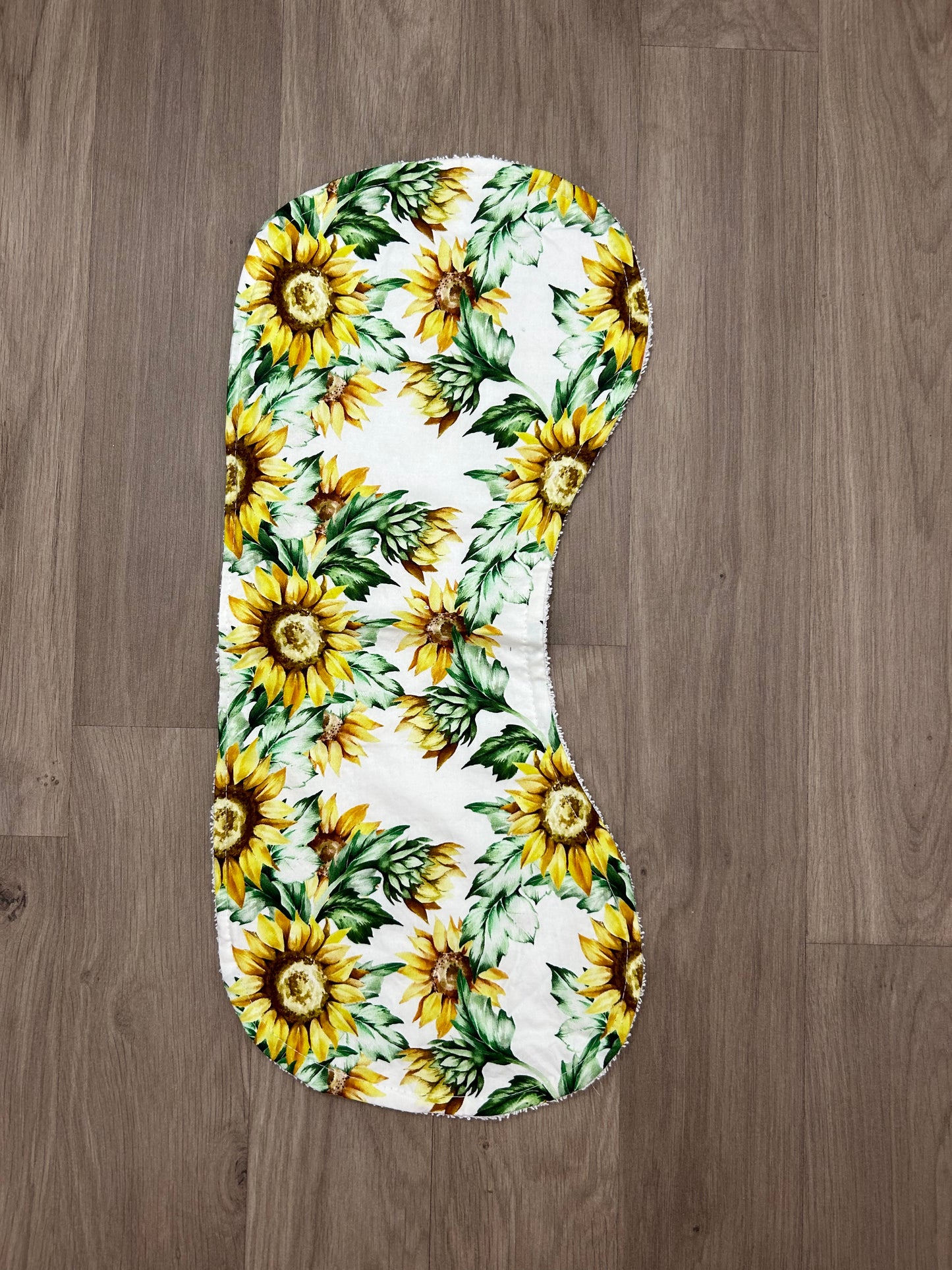 Our beautiful bibs and burp cloths are handmade with cotton on the front and absorbent toweling on the back.