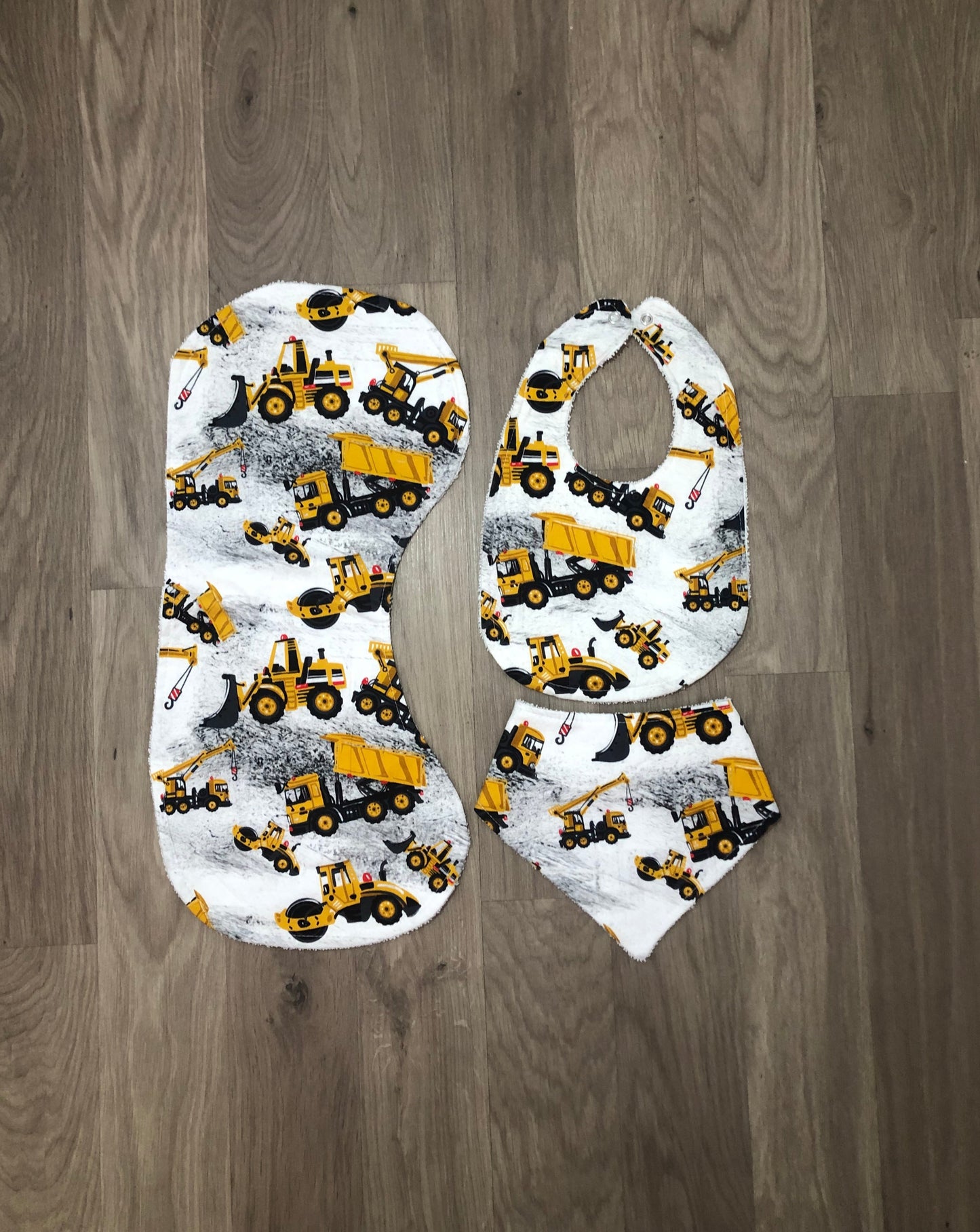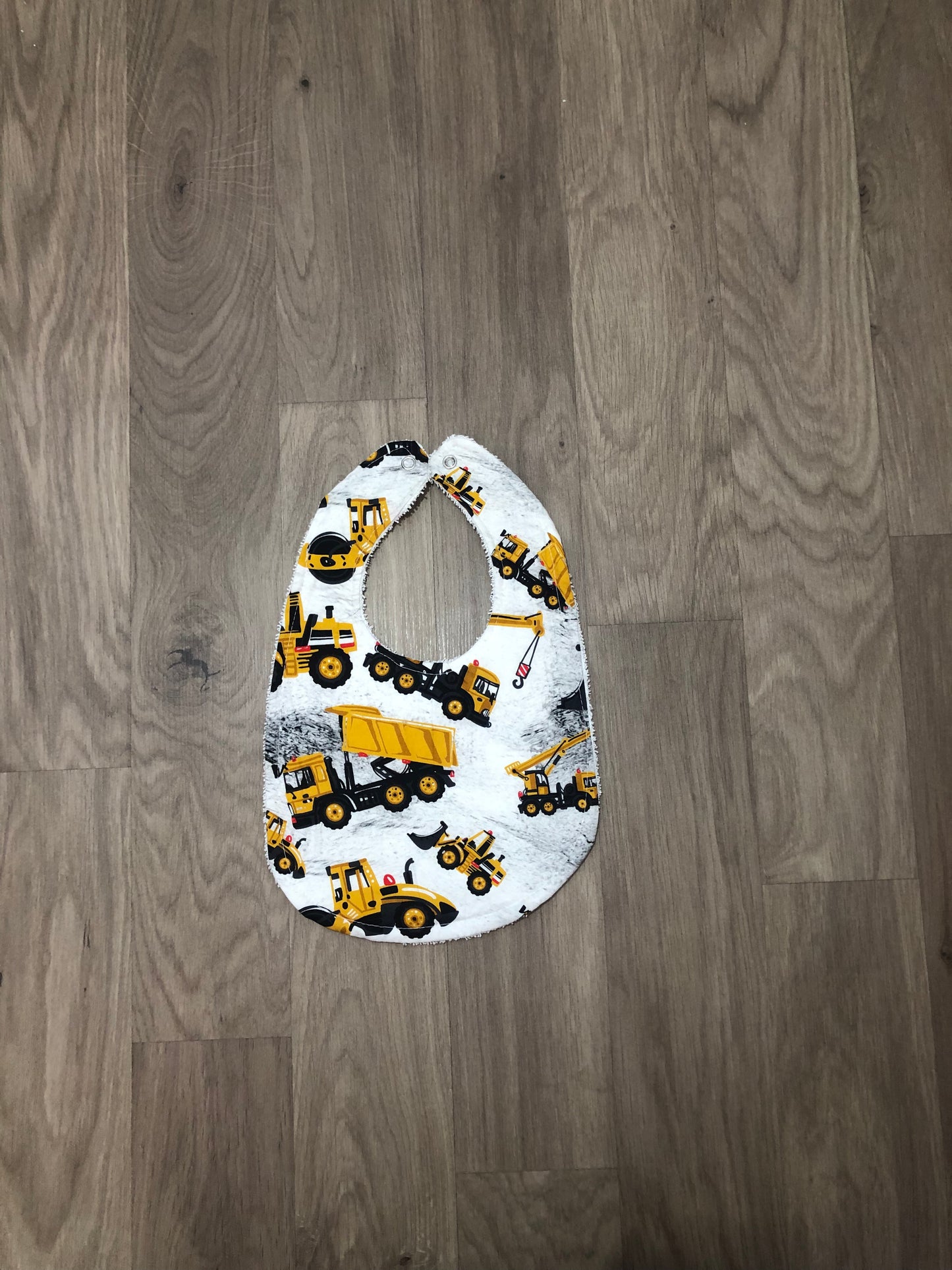 Our beautiful bibs and burp cloths are handmade with cotton on the front and absorbent toweling on the back.