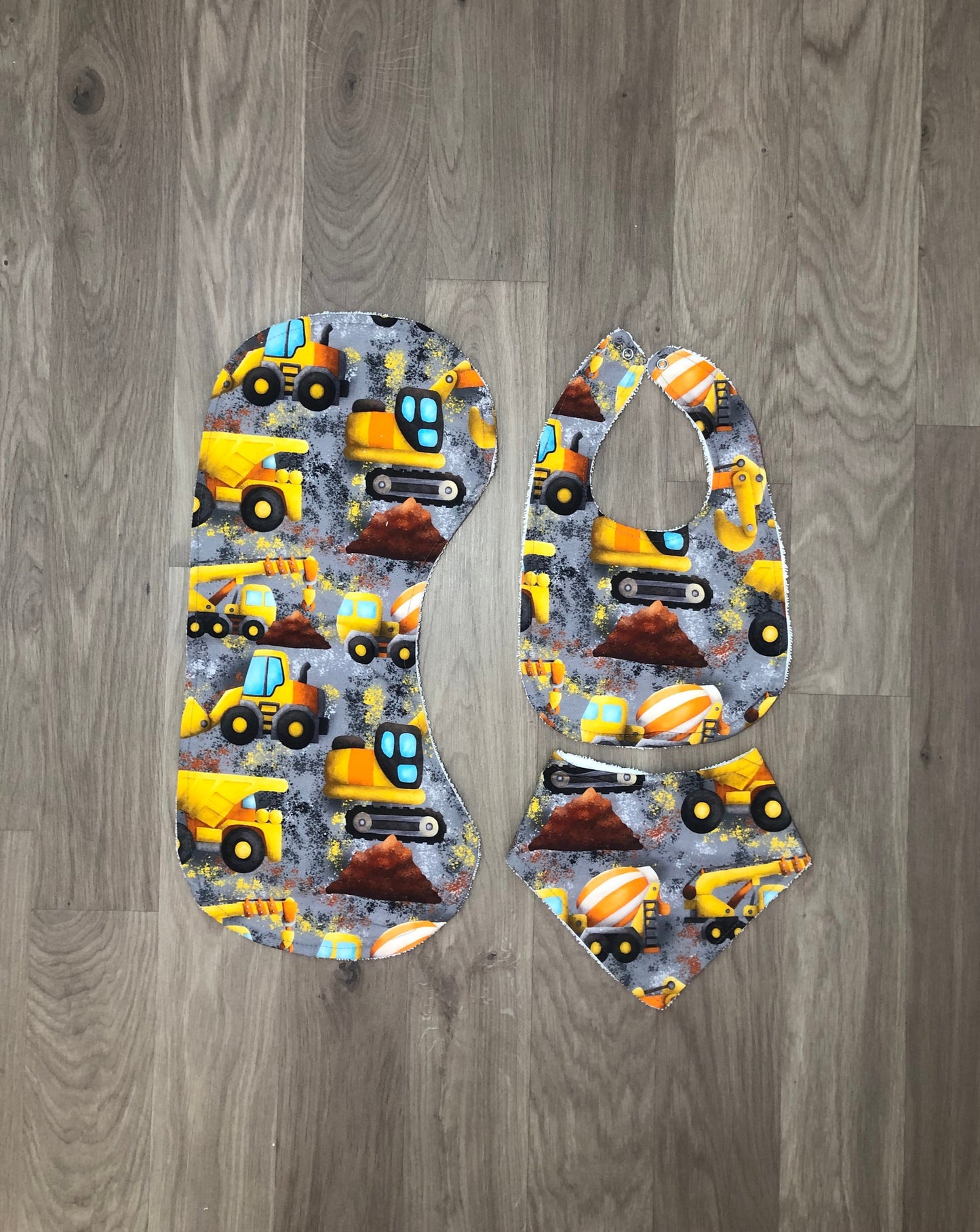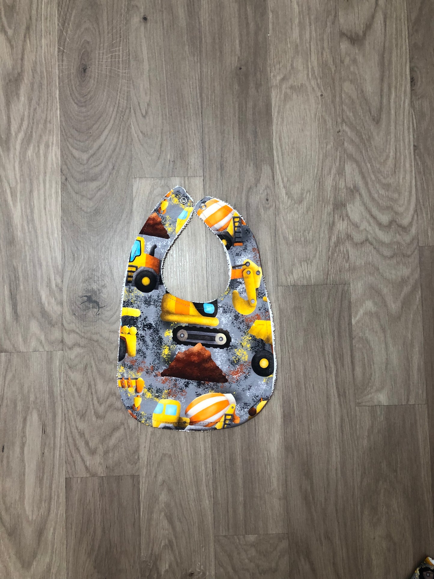 Our beautiful bibs and burp cloths are handmade with cotton on the front and absorbent toweling on the back.