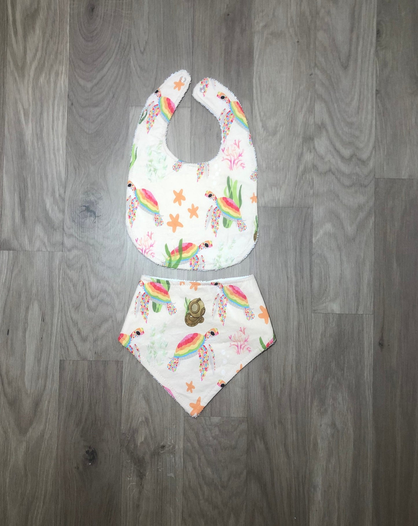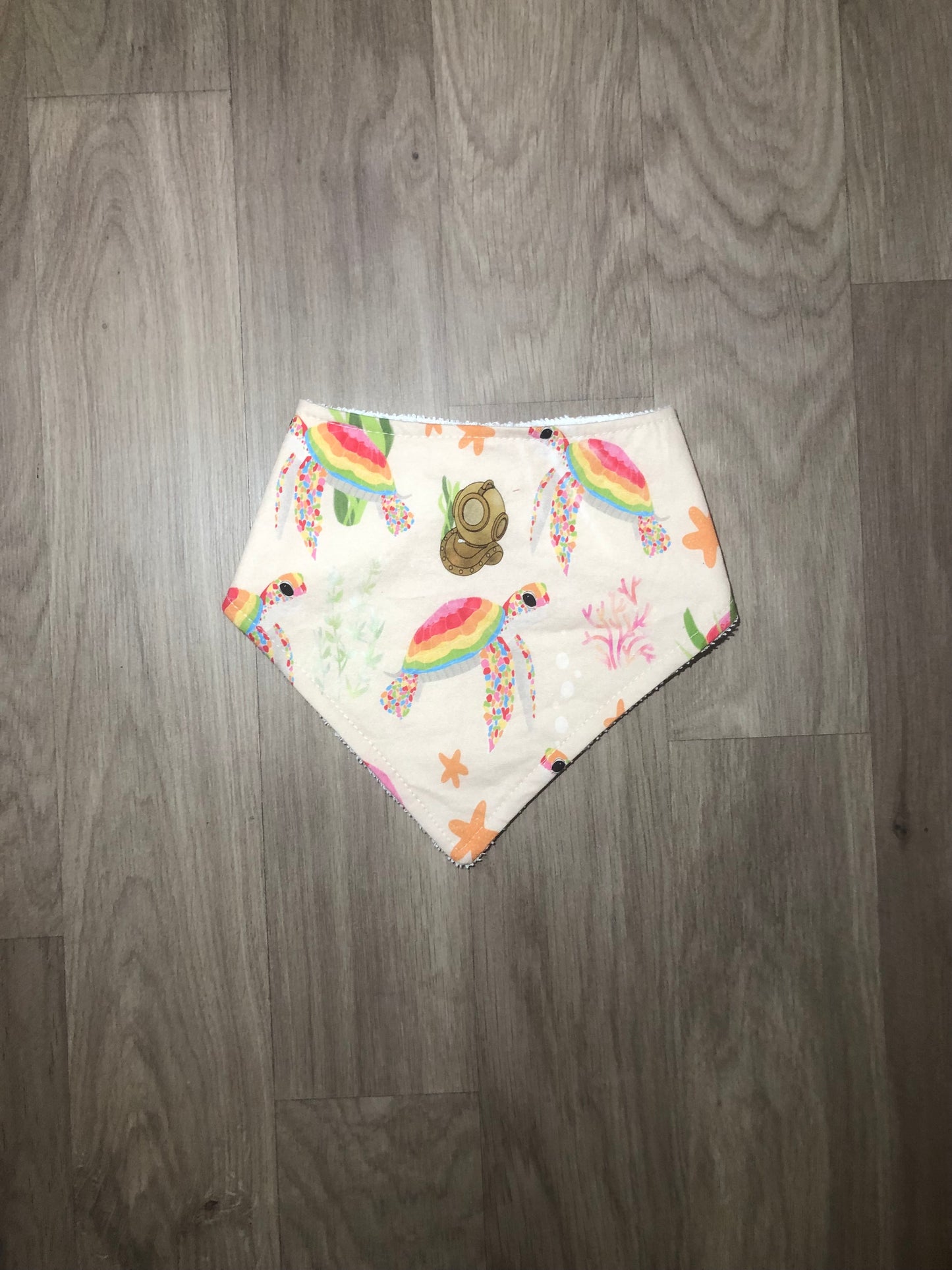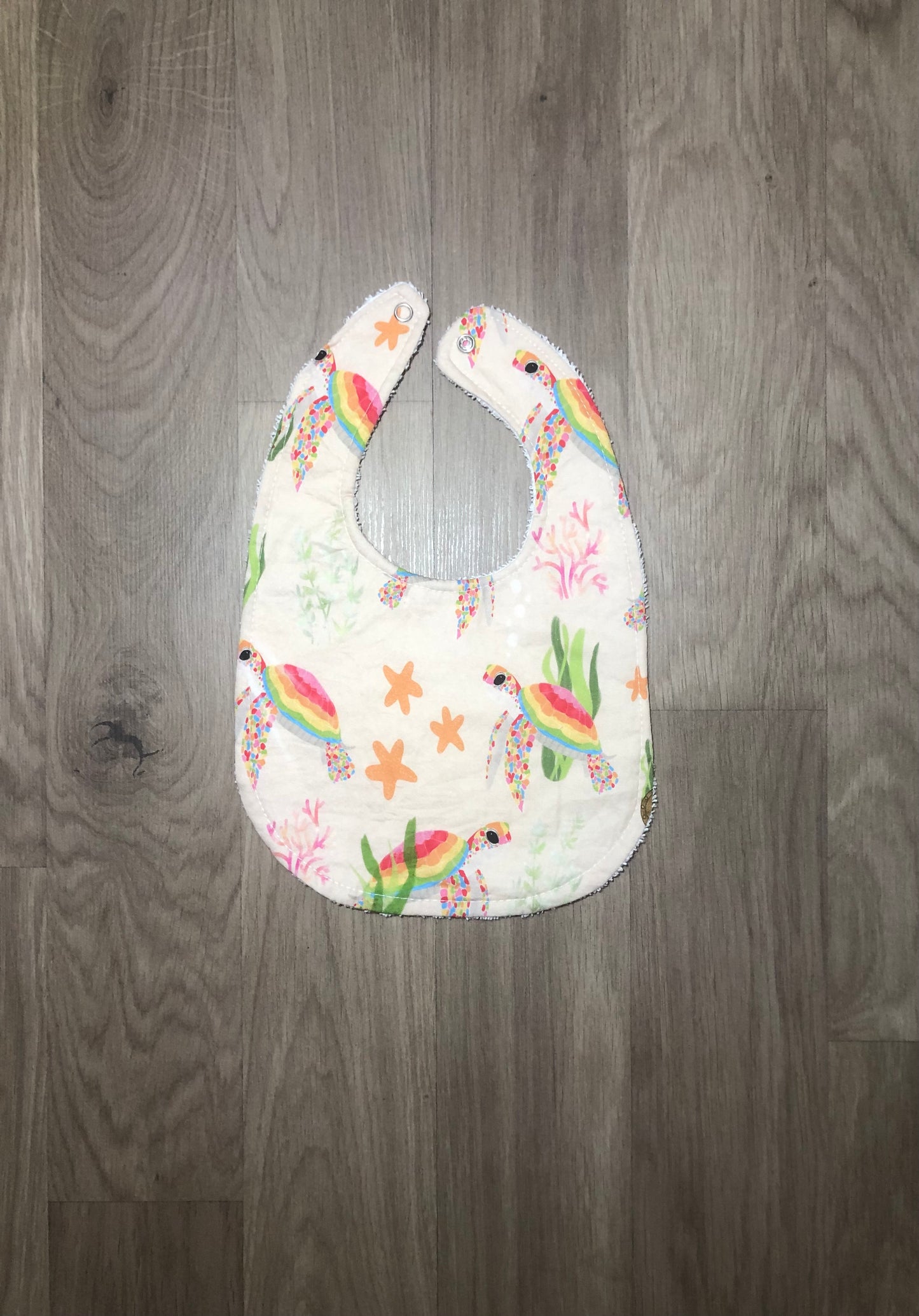 These beautiful bibs are handmade with cotton on the front and absorbent toweling on the back.